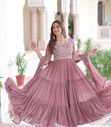 | Product Name | Peach Georgette Sequins Bead Embroidered Ruffle Flared Gown With Dupatta | |