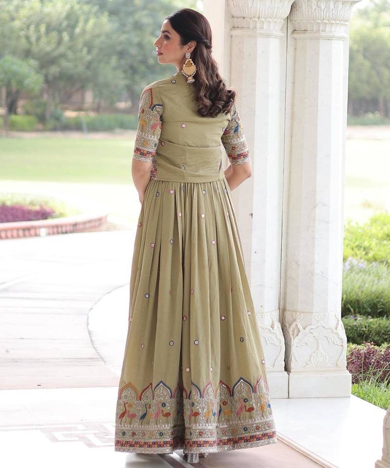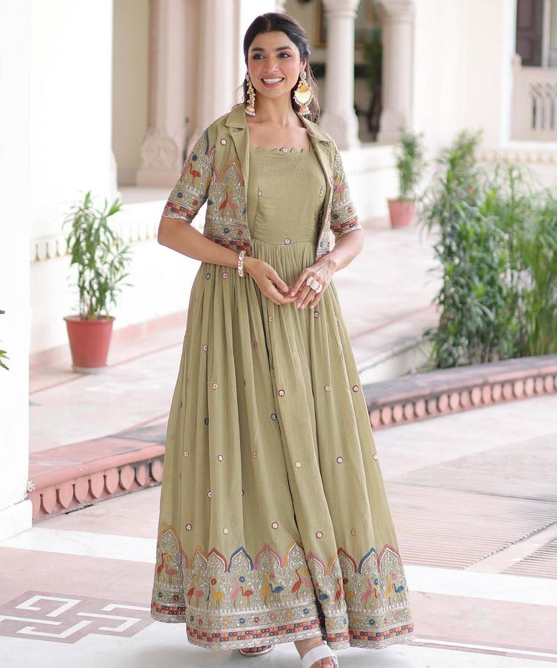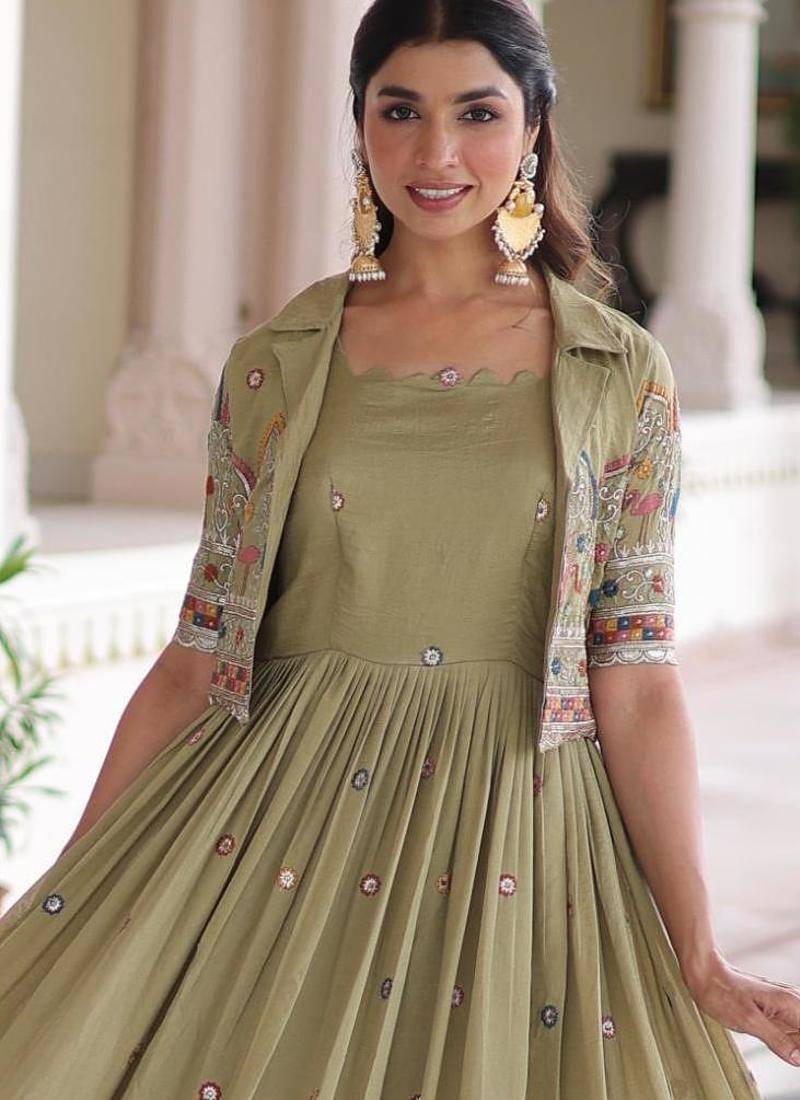 | Product Name | Pista Vichitra Silk Sequins Embroidered Flared Gown With Koti | |
