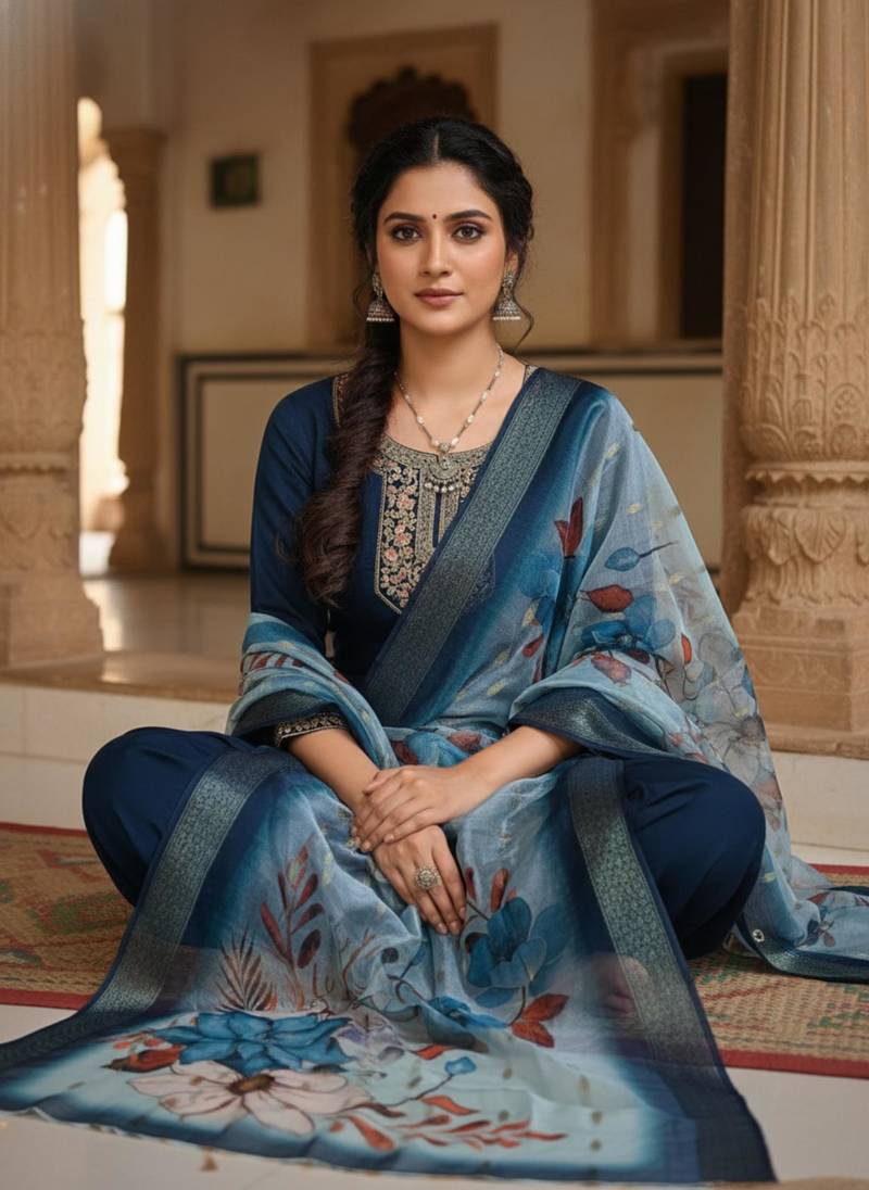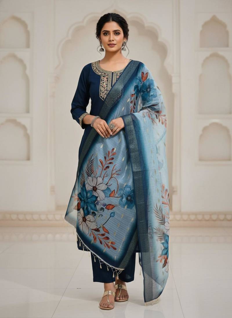 Rama coding sequence embroidered kurta with trouser & dupatta stitched