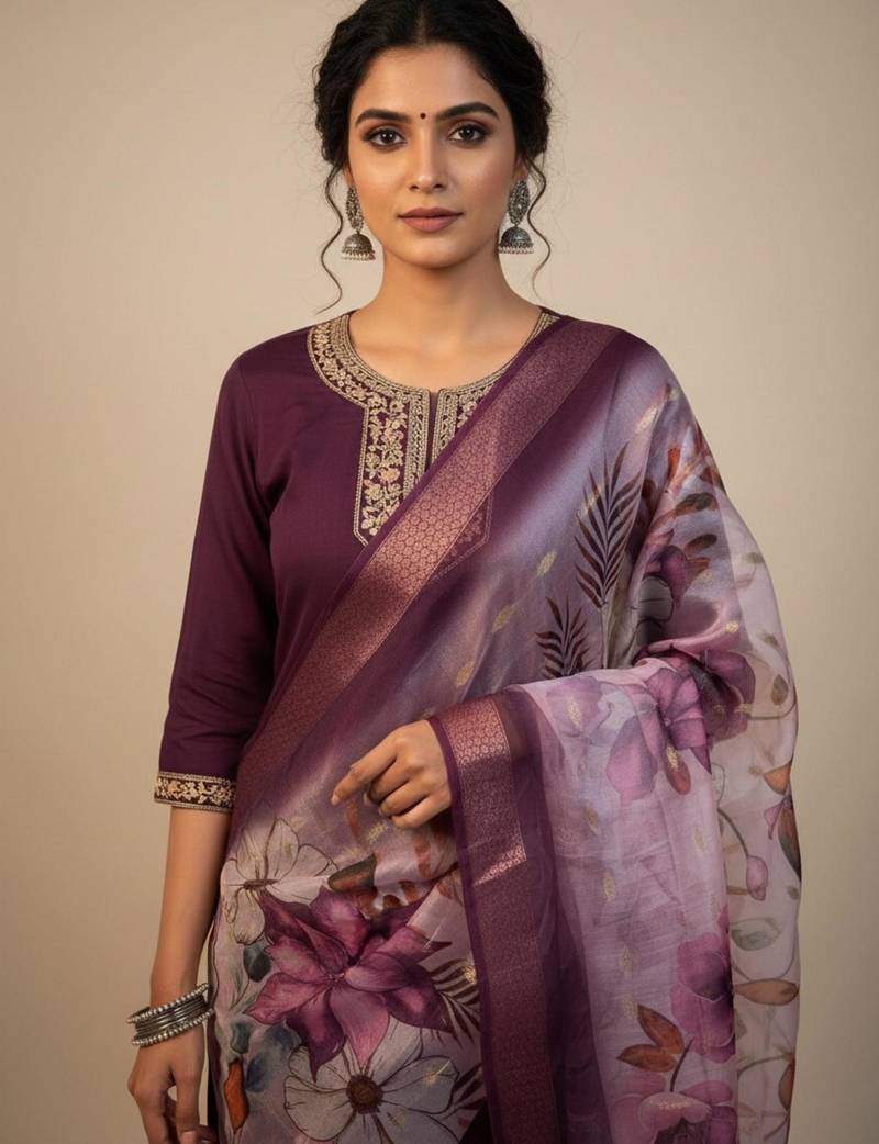 | Product Name | Wine Coding Sequence Embroidered Kurta With Trouser & Dupatta | |