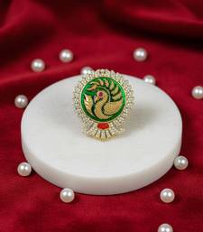 Unisex victorian polish peacock doublet ring with moissanite polki