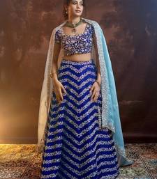 Blue satin sequin embroidery work lehenga choli with dupatta for women