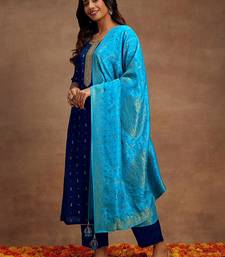 NavyBlue Jaquard Silk Embroidery sequence Work Kurta Pant With Dupatta