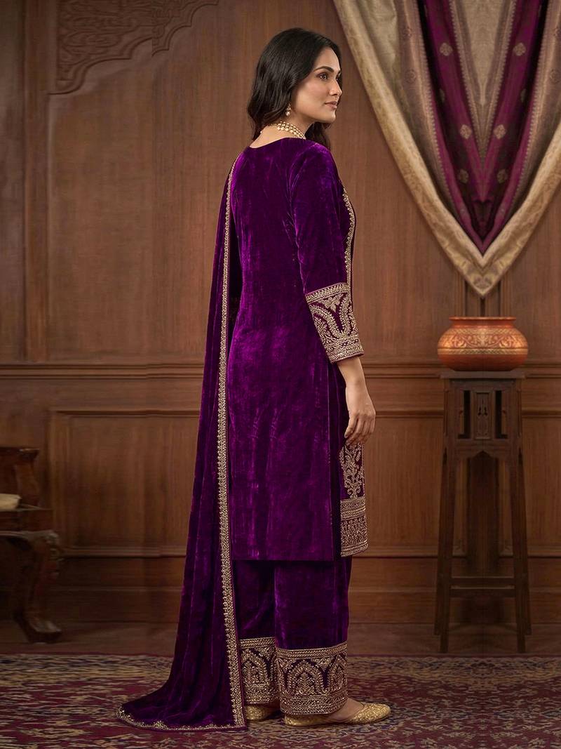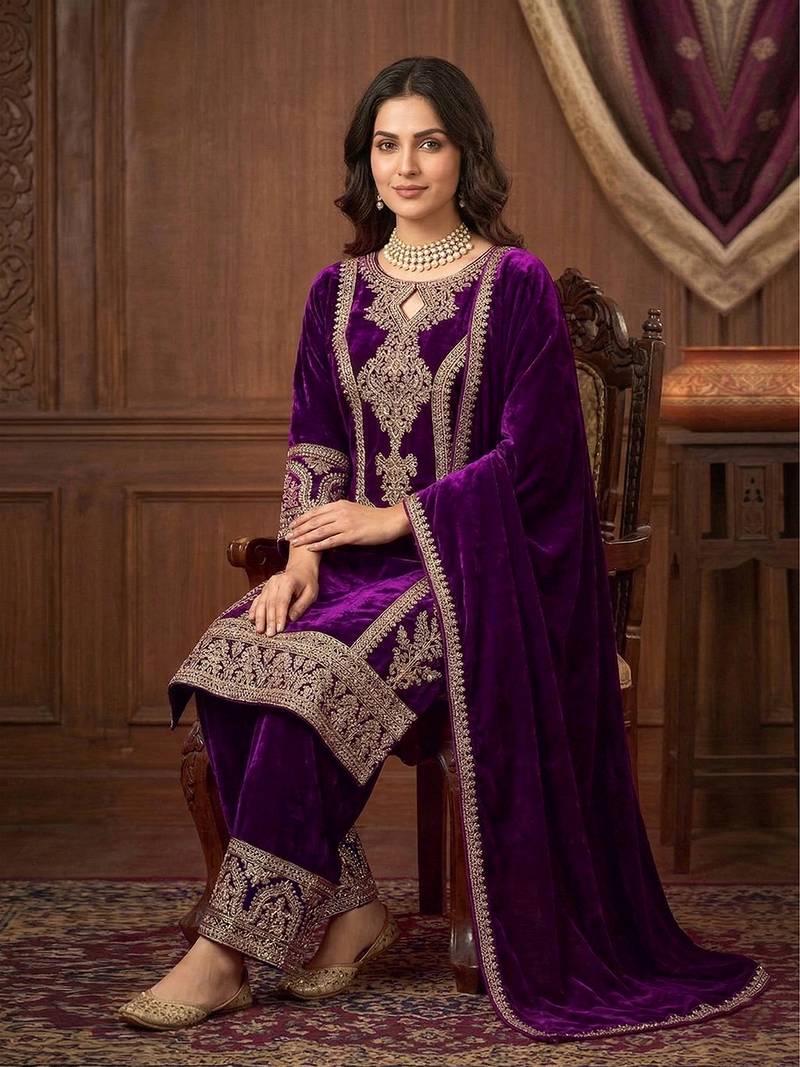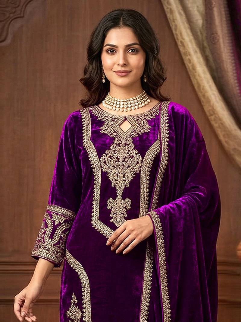 Suit Fabric: Kurta Salwar Dupatta: Velvet | Inner: Crepe