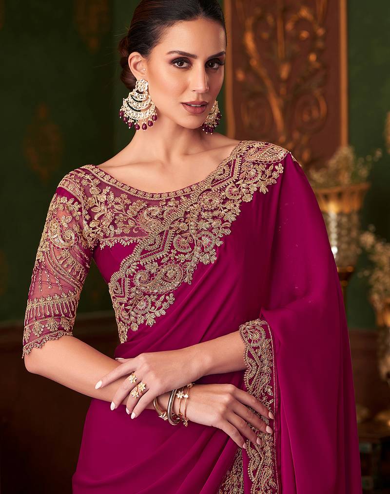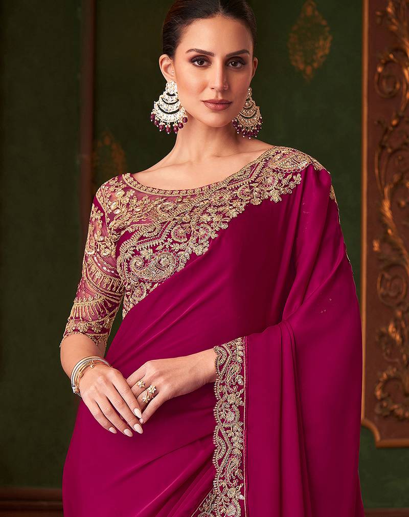 | • | Saree | : | Color- Dark Pink / Fabric- Satin |