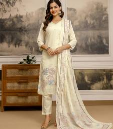 White pure cotton floral print embroidery work anarkali kurta pant with dupatta stitched