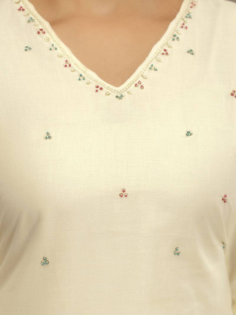 Color: Off White || Sleeves Type: 3/4 Sleeve || Neckline: V Neck