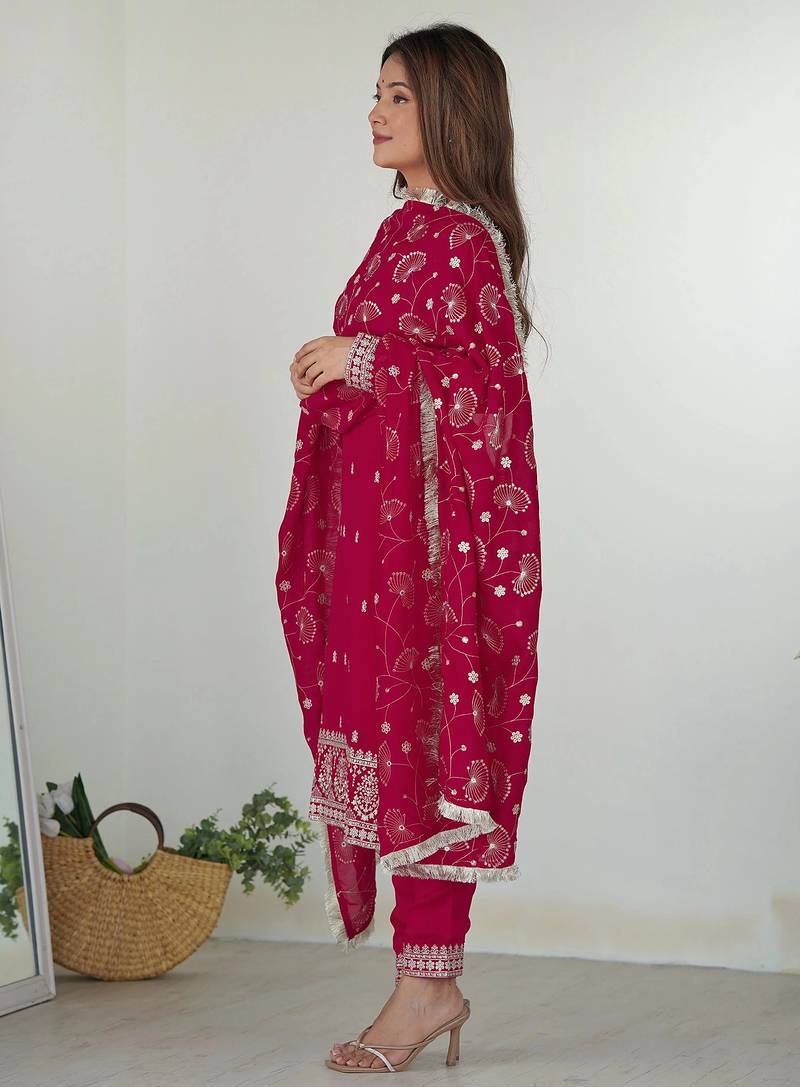 Women's georgette sequins embroidered kurta pant with dupatta set