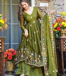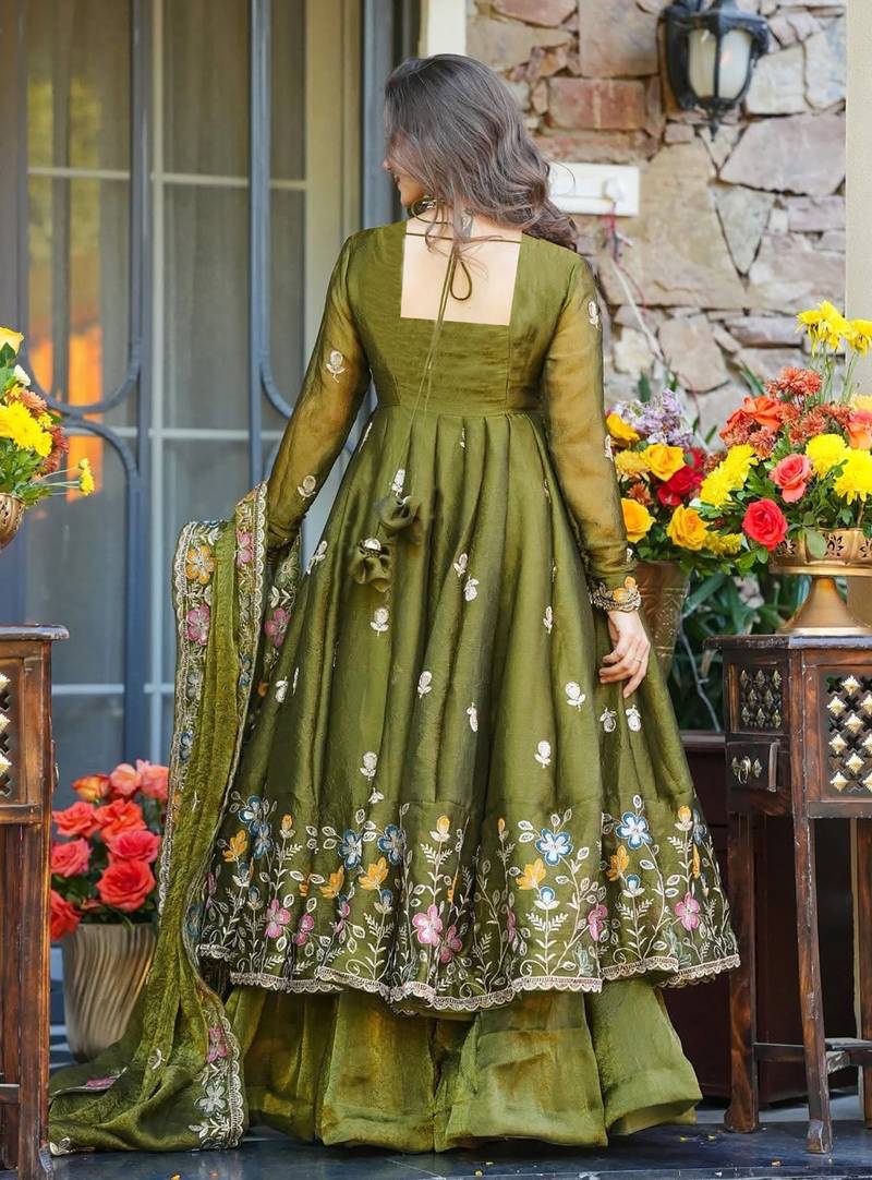 Women's organza floral embroidered anarkali kurta palazzo with dupatta set