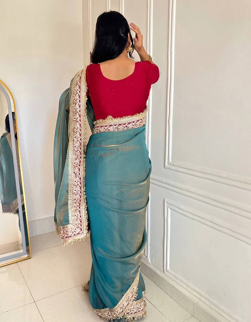 | • | Saree | : | Color- Teal / Fabric- Silk |