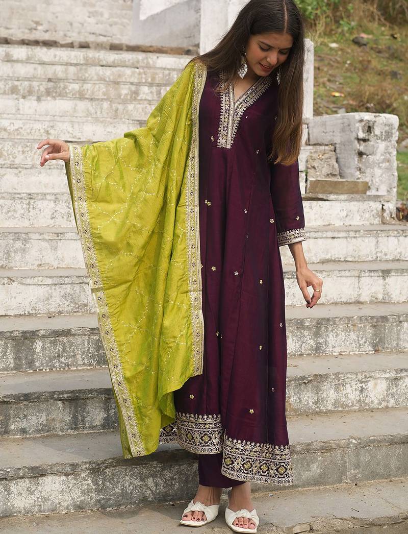 | Product Name | Women's Vichitra Silk Sequins Embroidered Anarkali Kurta Pant With Dupatta Set | |
