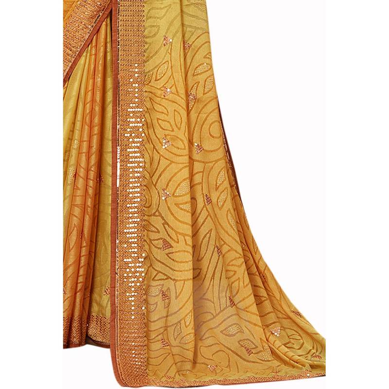 | Product Name | Orange Floral Print Brasso Party Wear Saree With Blouse | |