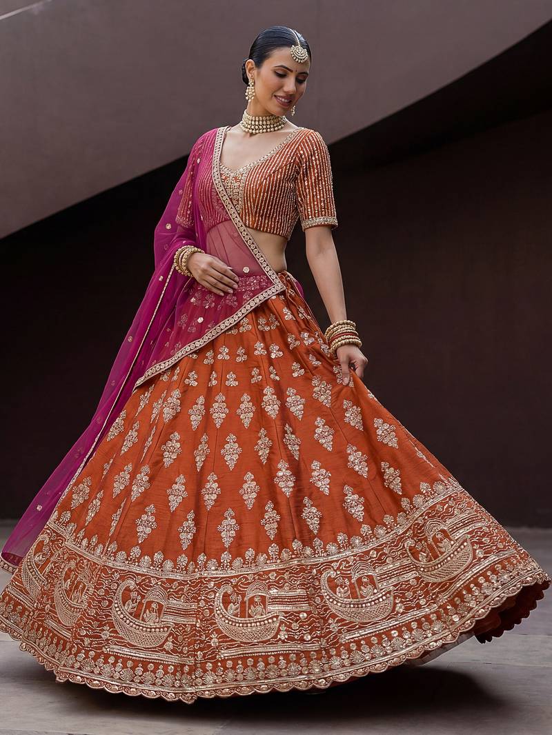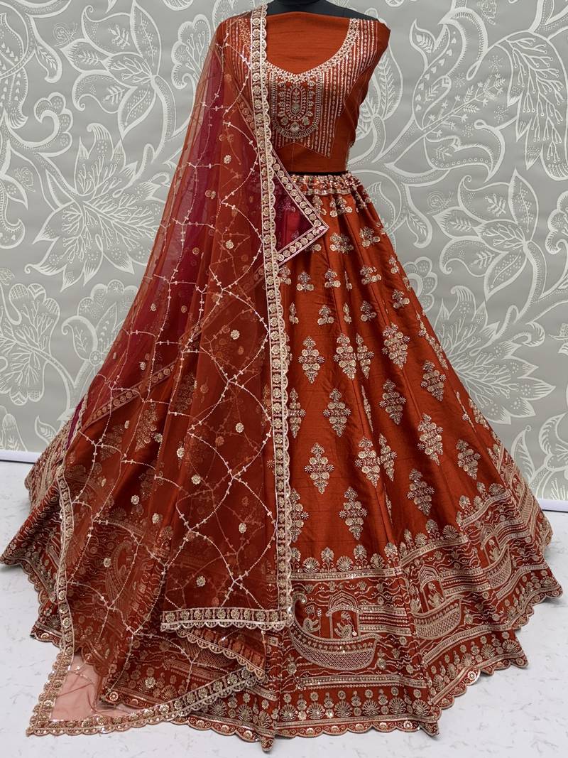 | Product Name | Awesome Rust Orange Hand Work Silk Bridal Lehenga Choli With Double Dupatta | |
