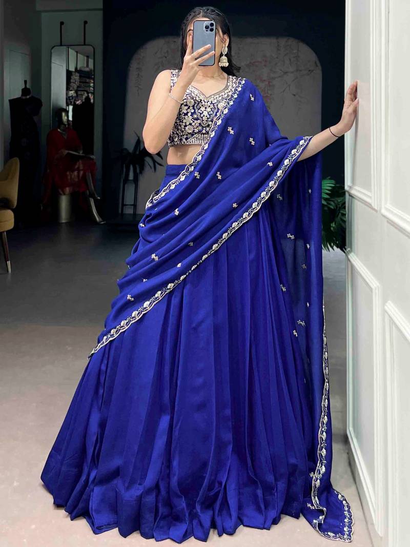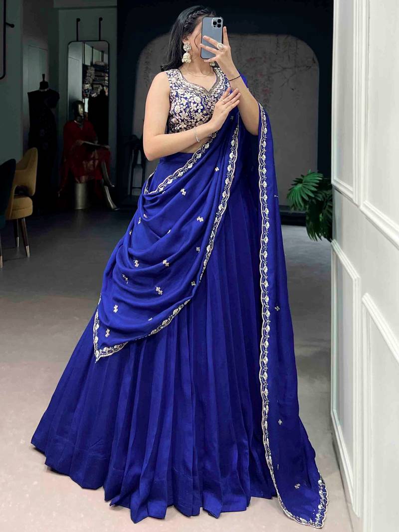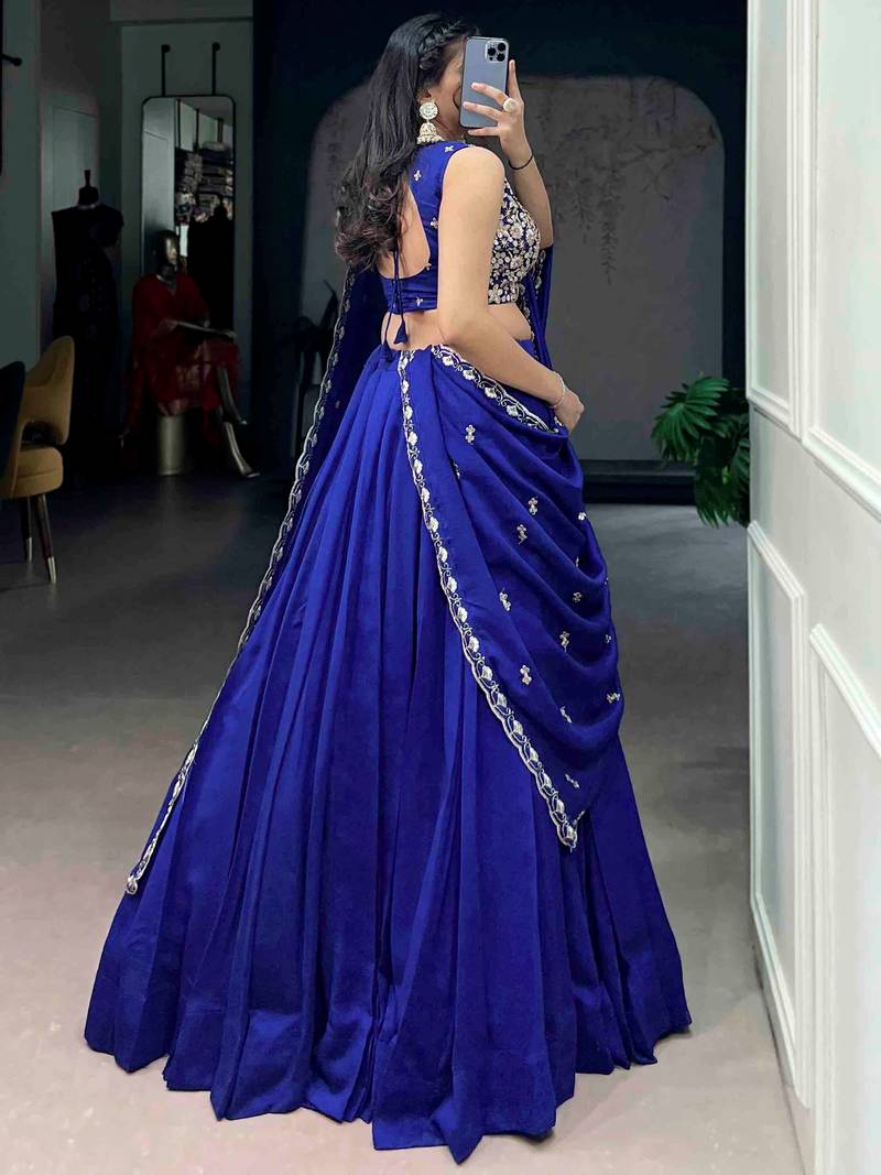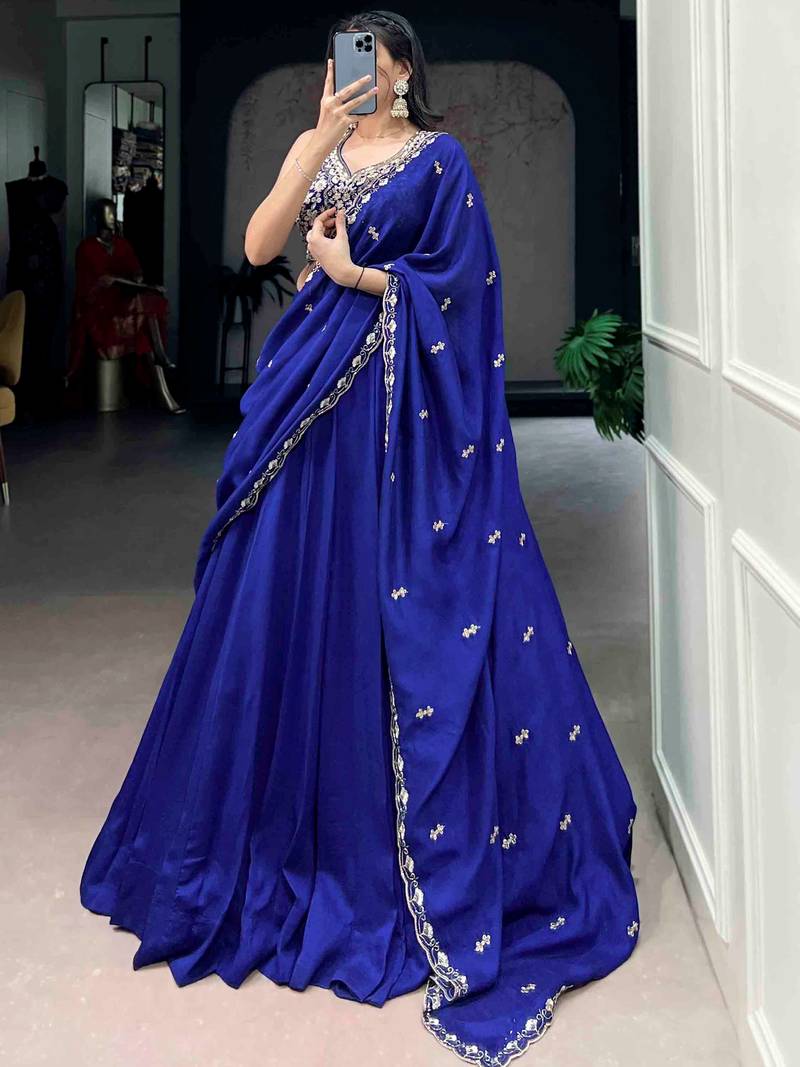 Beautiful blue silk festive wear lehenga and embroidered choli