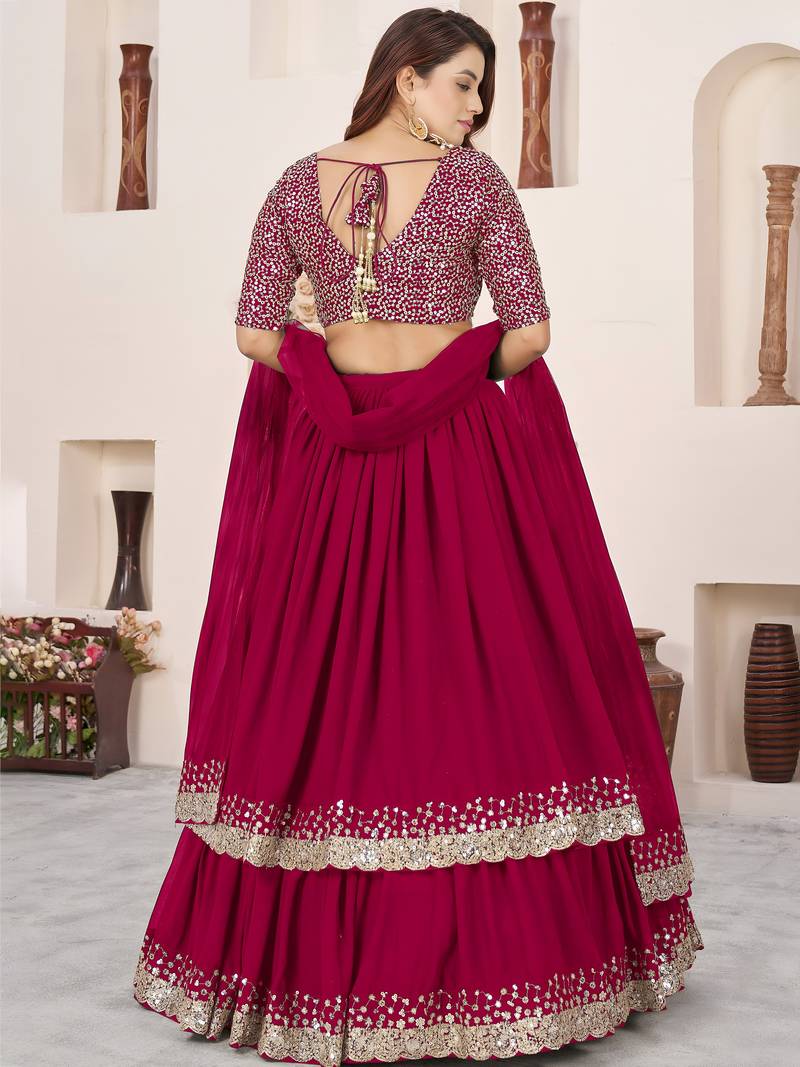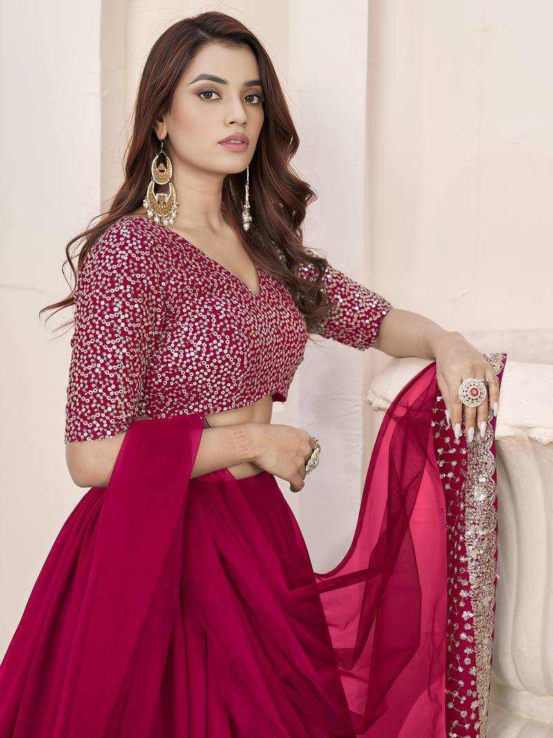Beautiful pink sequins georgette wedding wear lehenga choli set