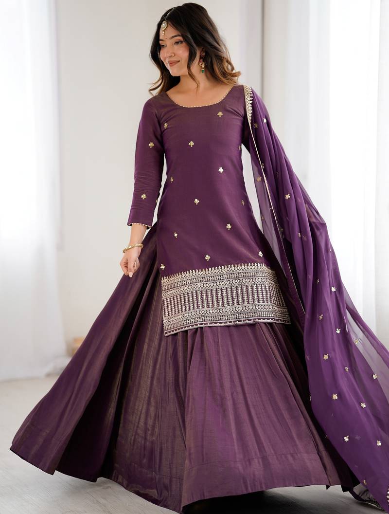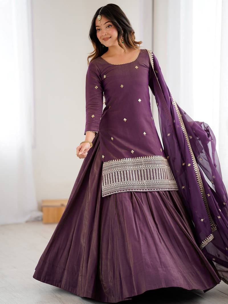 | Product Name | Bewitching Purple Zari Work Silk Designer Lehenga With Kurti | |