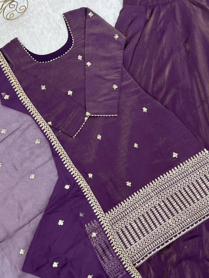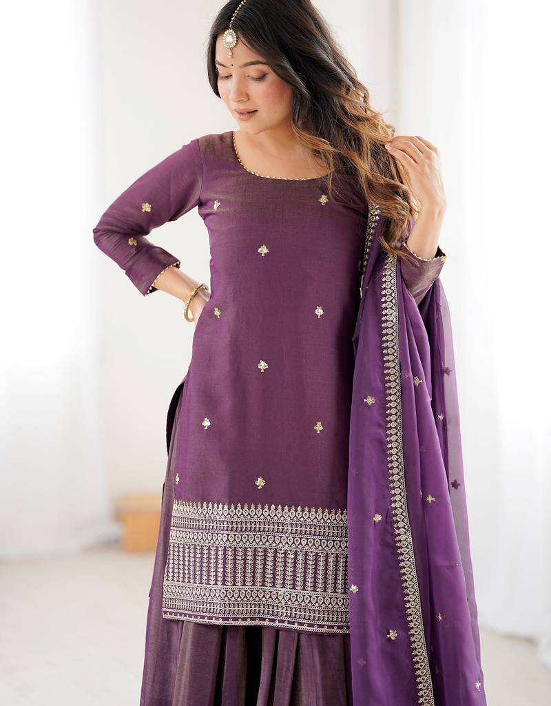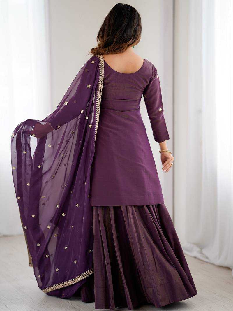 | Product Description | The Kurta Comes In A Rich And Elegant Deep Wine Purple Shade, Highlighted With Subtle Gold Embroidery, Sequence, Dori, And Zari Work, Giving It A Refined Festive Appeal.