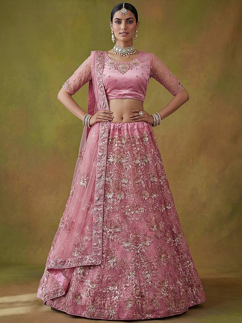 | Product Description | This Lehenga Features A Soft And Elegant Dusty Rose Pink Lehenga Base Crafted In Net, Highlighted With Intricate Embroidery In Blush Pink, Baby Pink, And Antique Gold Tones. The Detailing Reflects Shades Of Rose, Mauve Pink, And Subtle Golden Shimmer, Enhanced With Sequins And 3 D Accents.