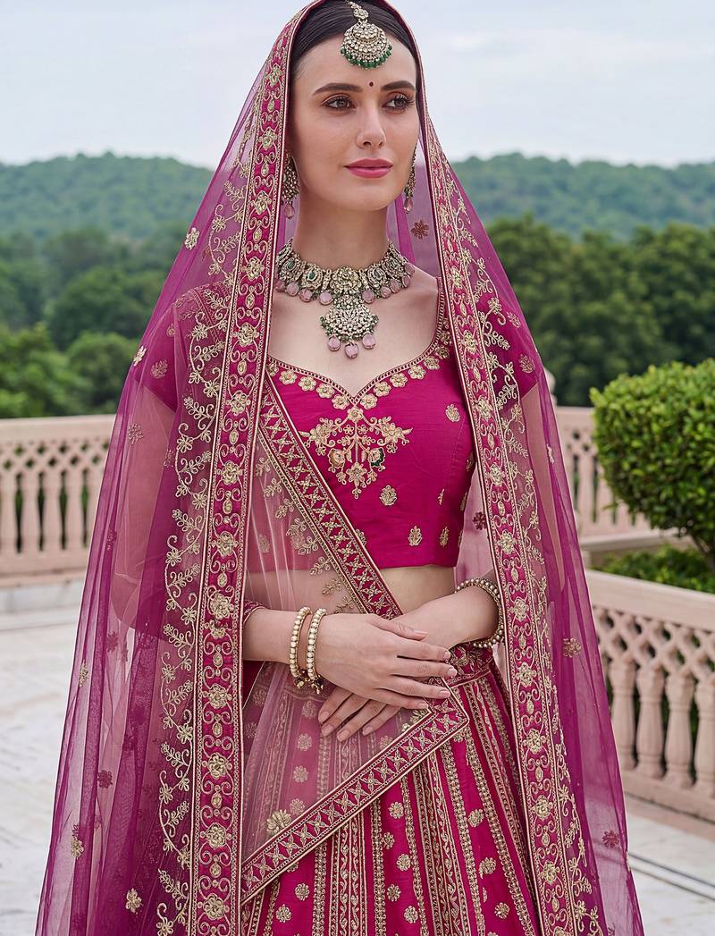 Product Name Classic Pink Multi Thread Work Silk Bridal Lehenga Choli With Double Dupatta