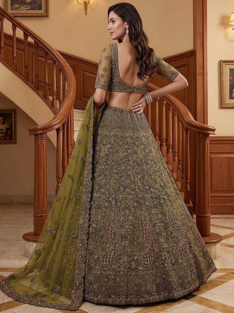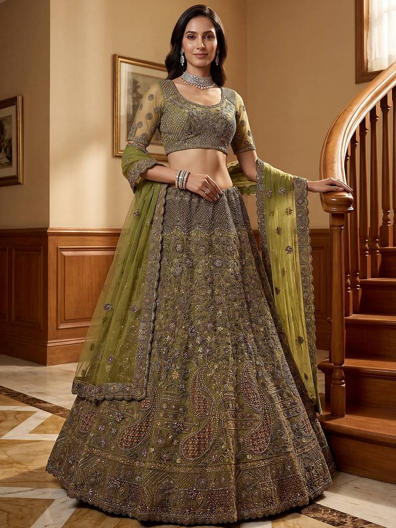 | Product Name | Excellent Olive Green Sequins Net Bridal Lehenga Choli With Dupatta | |