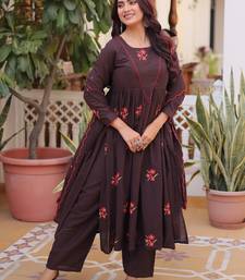 Exclusive brown floral embroidered cotton summer special pant suit stitched