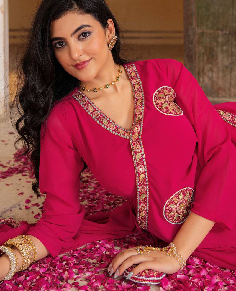 | Product Name | Gorgeous Pink Embroidered Georgette Function Wear Gown With Dupatta | |