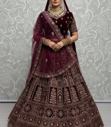 Wine Velvet Bridal Lehenga Set Choli With Dupatta With Double Dupatta