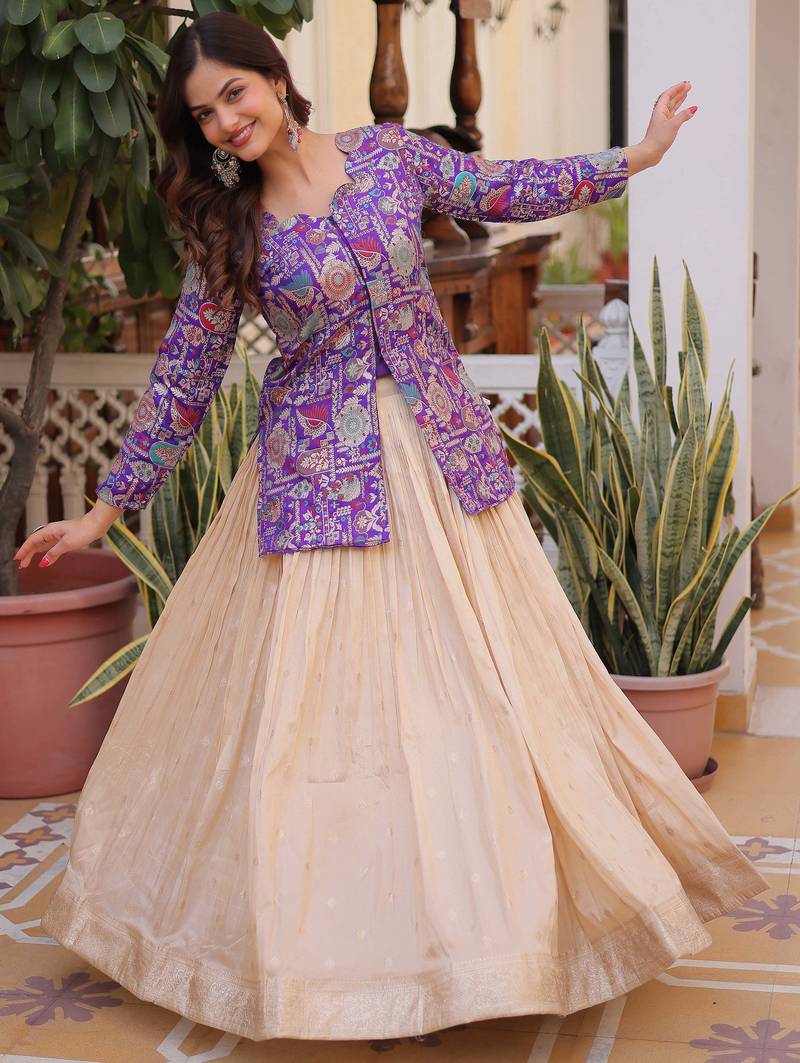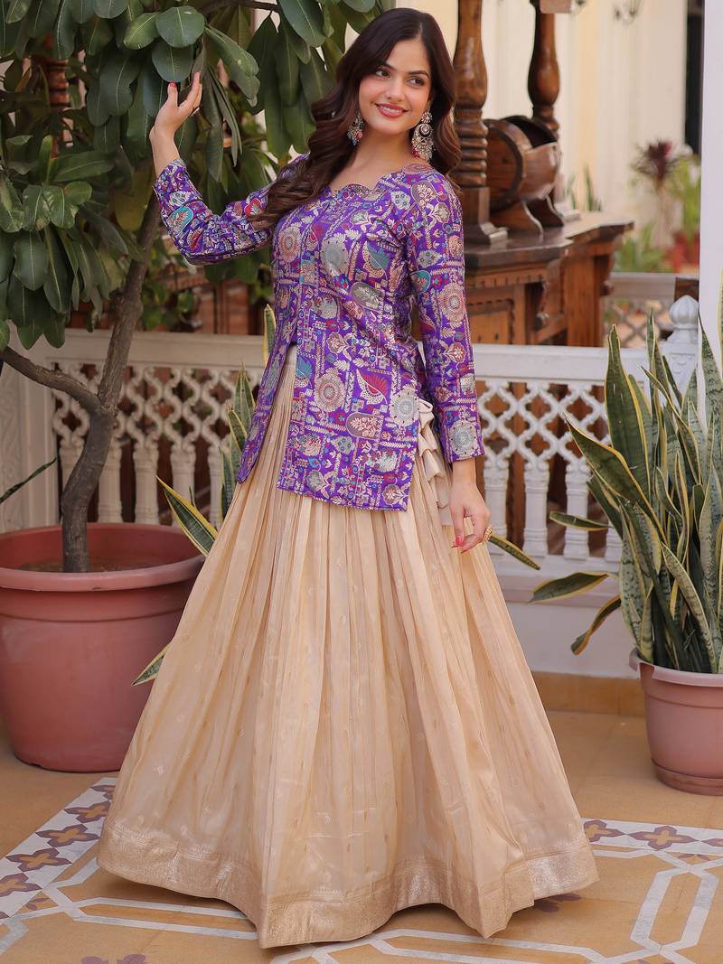 | Product Name | Outstanding Purple Zari Weaving Wedding Wear Lehenga With Peplum Top | |