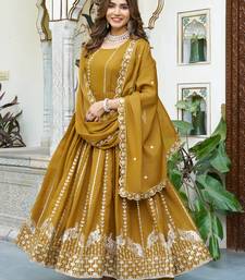 This Beautiful Gown Comes In A Rich Mustard Color, Crafted From Premium Star Georgette Fabric. It Features Heavy 7mm Sequin Embroidery Work Throughout, Adding A Regal And Festive Charm To The Outfit.