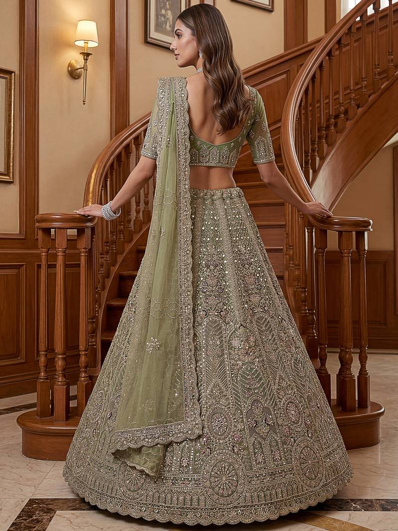 | Product Name | Ravishing Green Heavy Embroidered Net Evening Wear Lehenga Choli | |