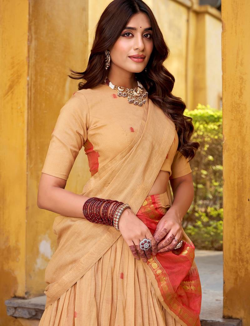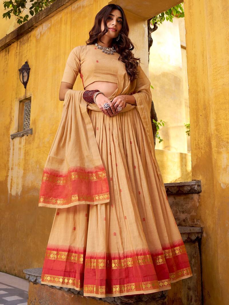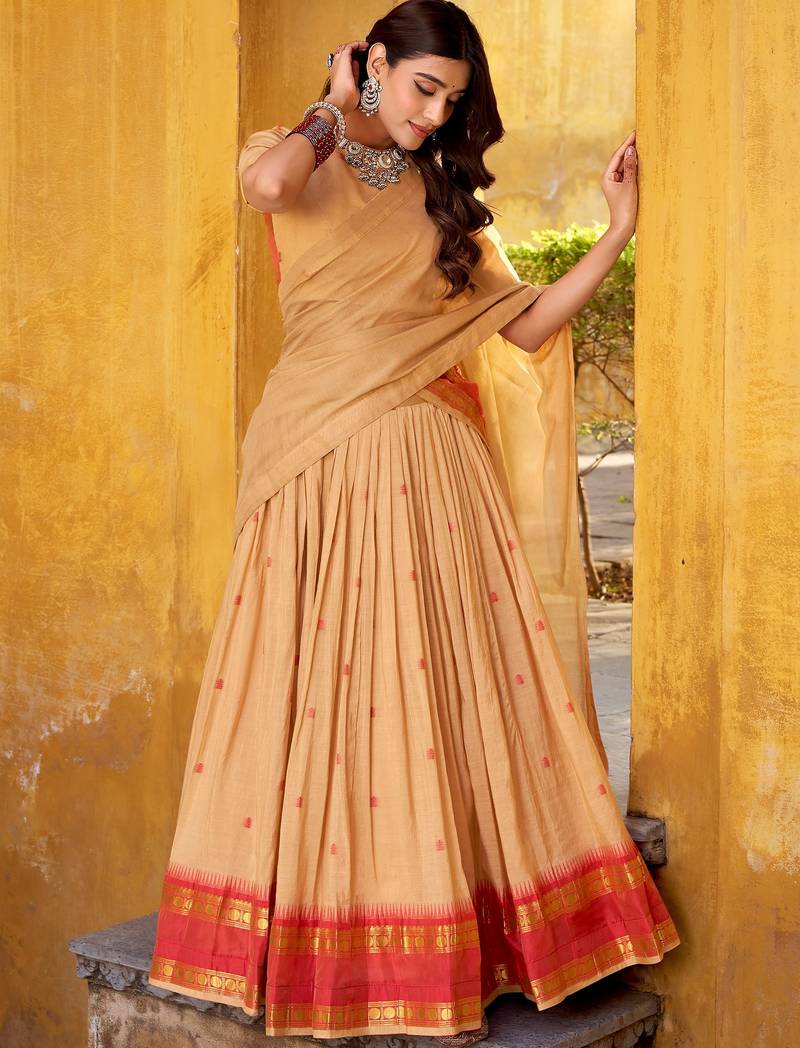 | Product Name | Rich Cream Zari Work Chanderi Festive Wear Half Saree Lehenga | |