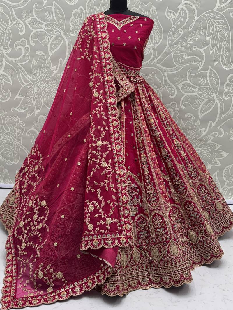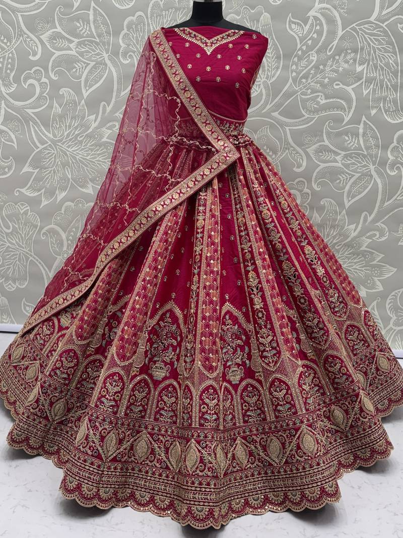 | Product Name | Sparkling Pink Thread Embroidered Silk Bridal Lehenga Choli With Double Dupatta | |