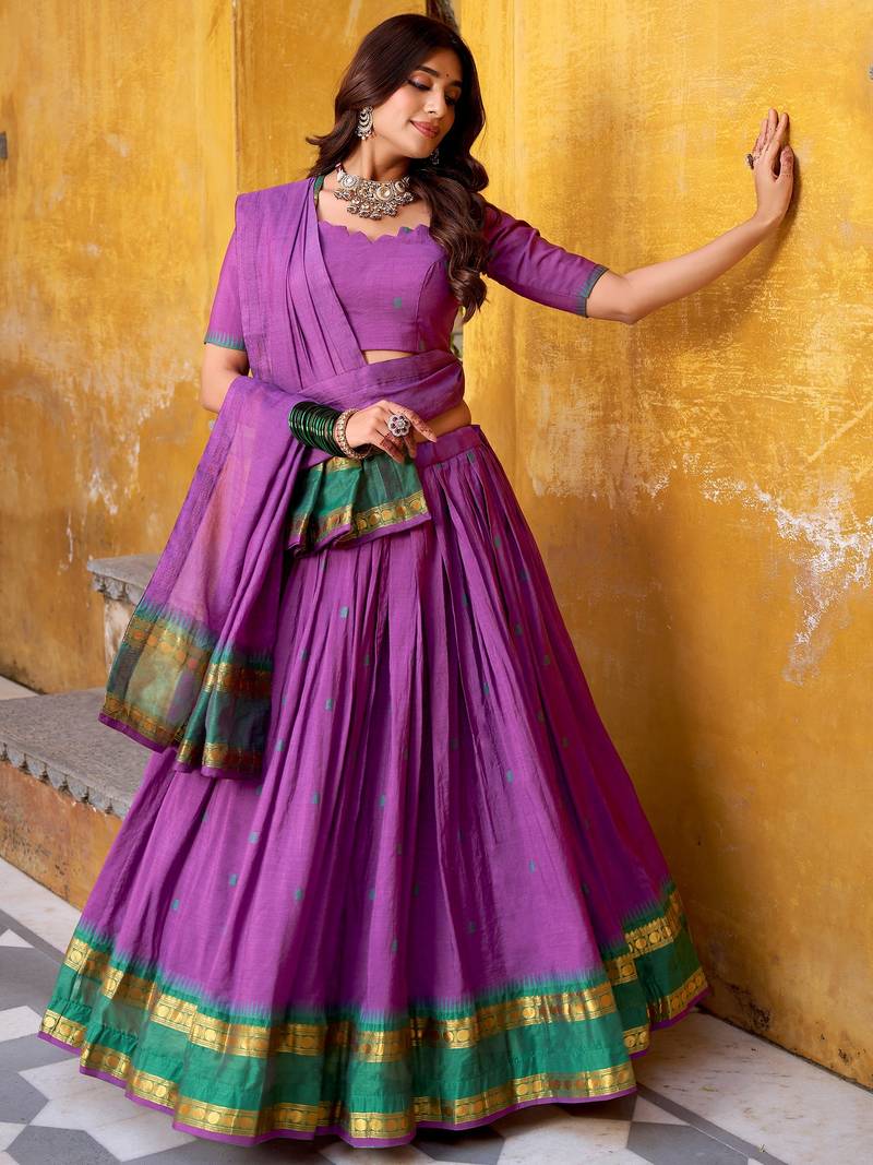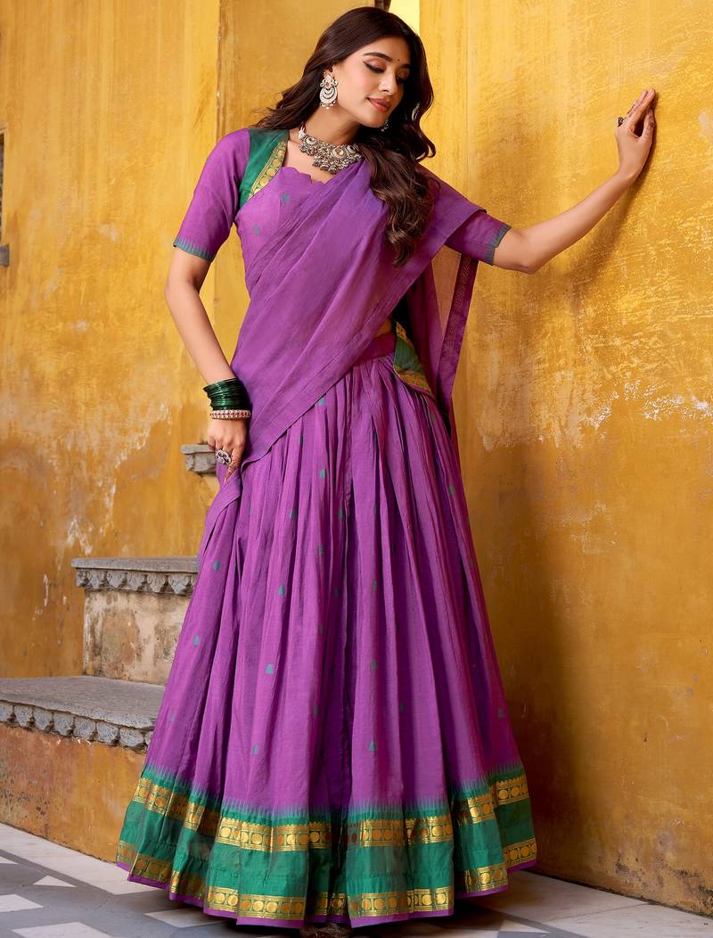 | Product Name | Stunning Purple Zari Weaving Chanderi Traditional Half Saree Lehenga | |