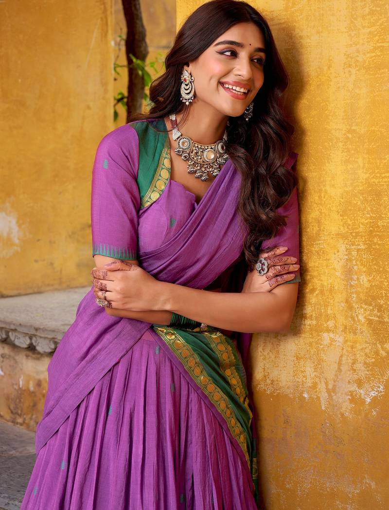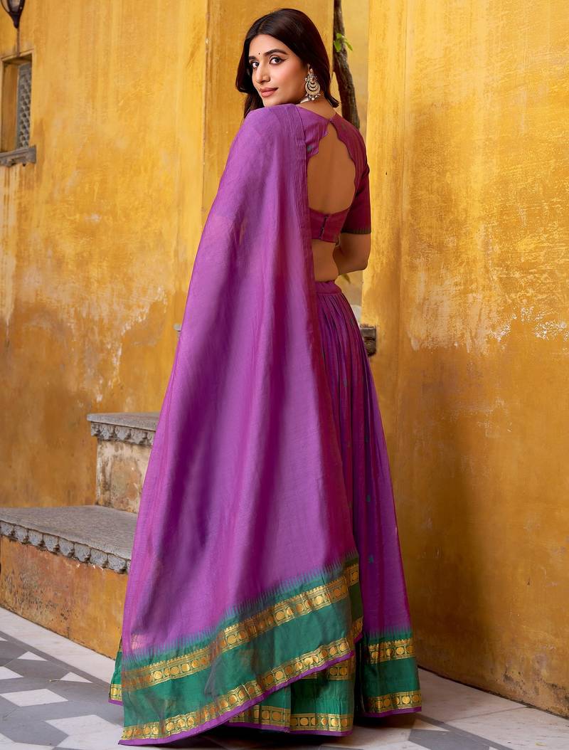 Stunning purple zari weaving chanderi traditional half saree lehenga