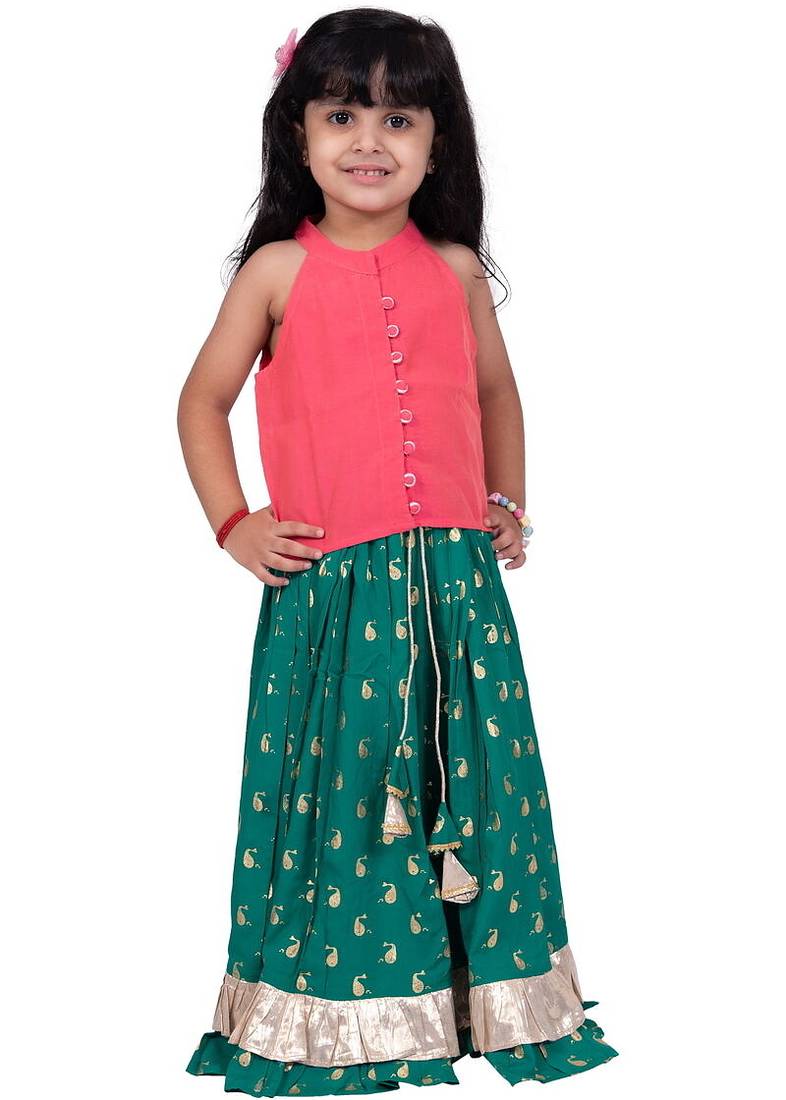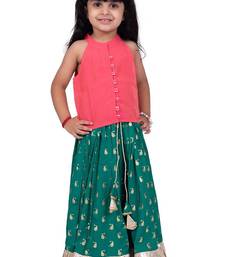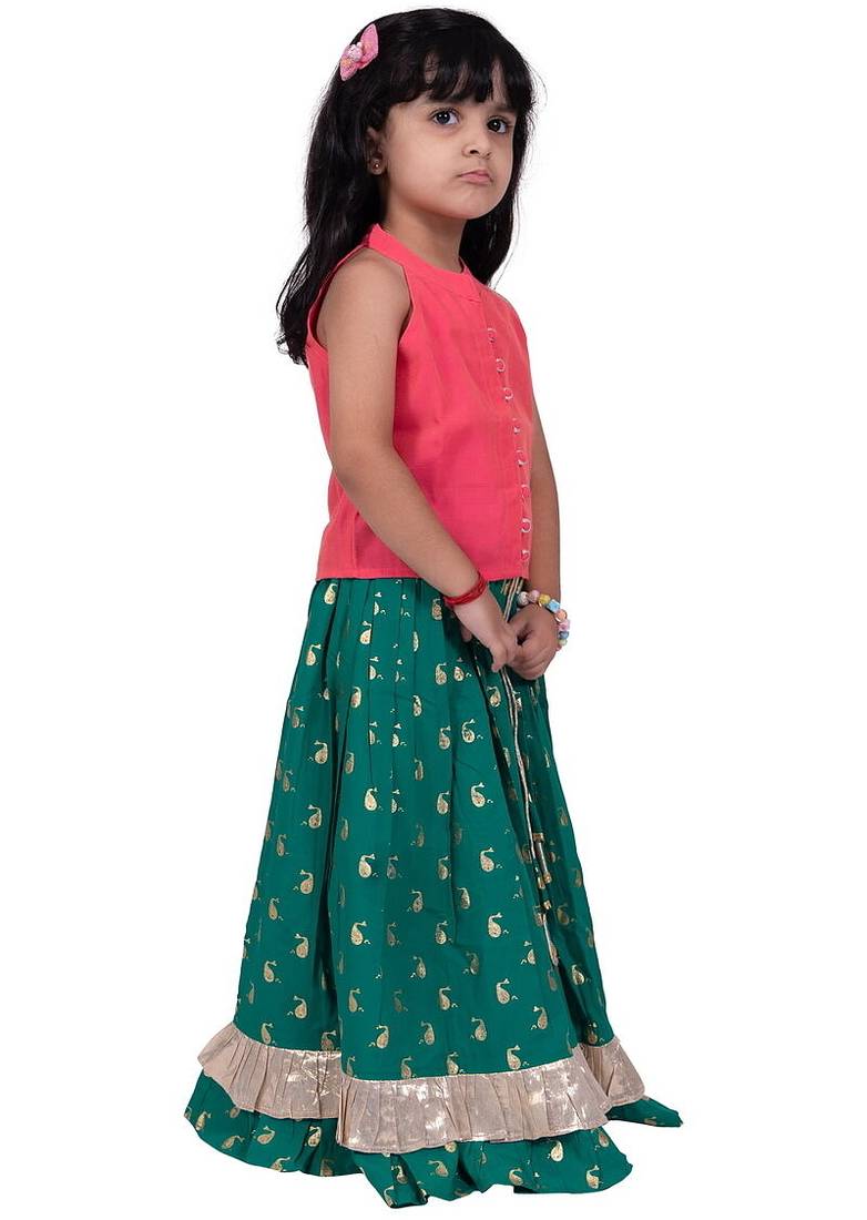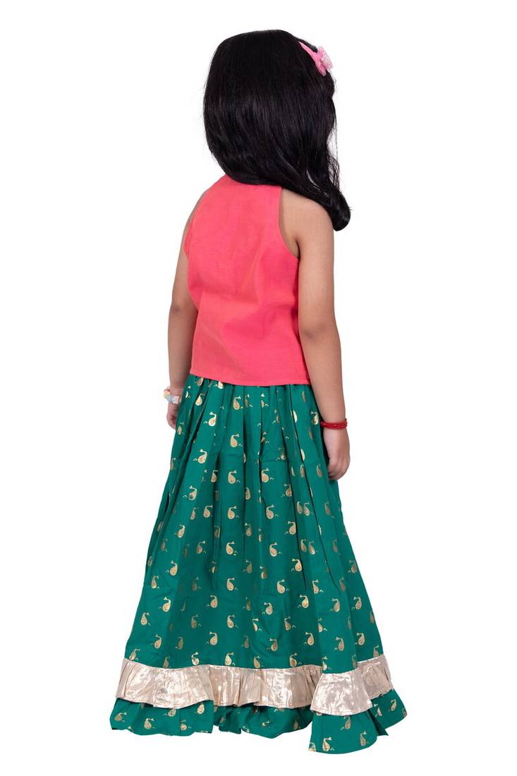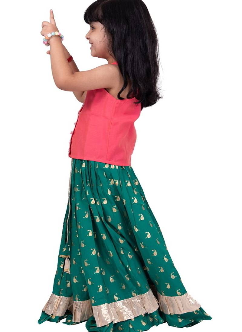 | Product Name | Chanderi Woven Sleeveless Solid Top & Printed Lehenga Coral & Green | |