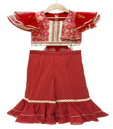 | Product Name | Elaisha Woven Brocade Half Sleeves Embellished Top With Palazzo Red | |