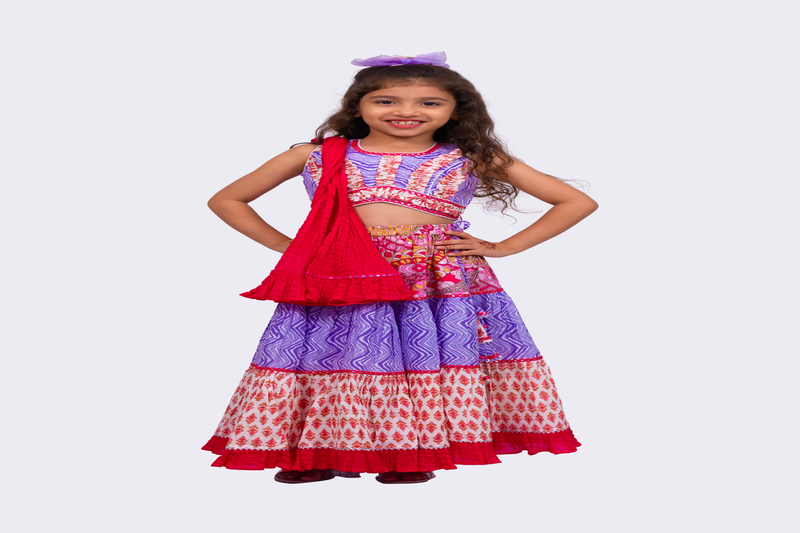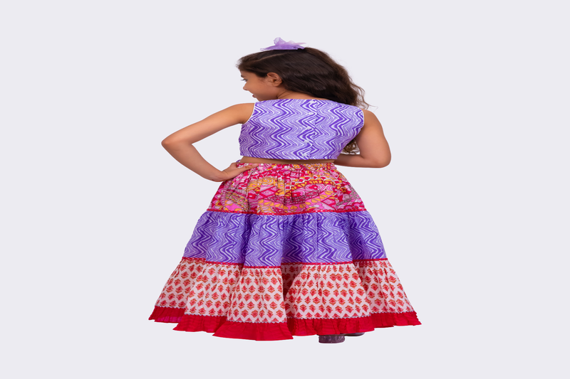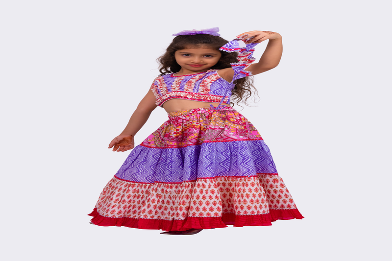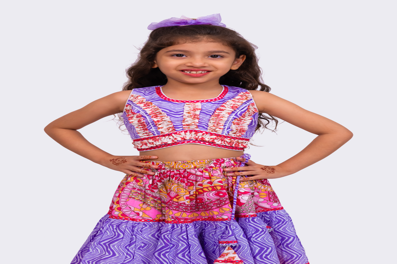 | Product Description | Twisha Woven Cotton Sleeveless All Over Printed Top With Printed Lehenga Lavender & Pink |