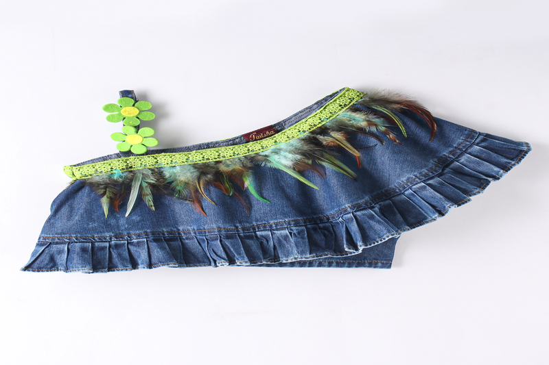 | Product Name | Elaisha Woven Embellished Denim Top With Skirt With Beautiful Butterfly Patch Blue & Limegreen | |