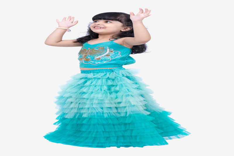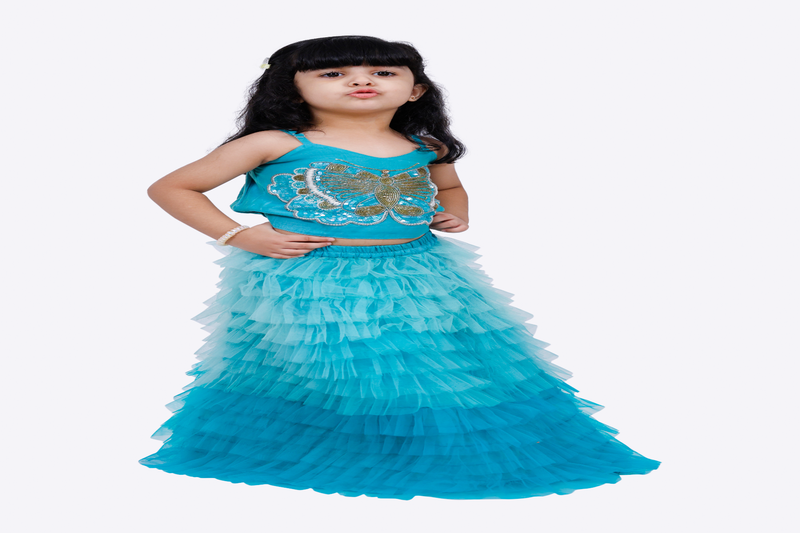 | Product Name | Elaisha Woven Sleeveless Placement Embroidered Top With Net Lehenga Blue | |