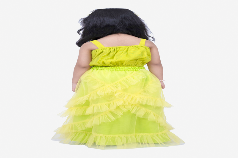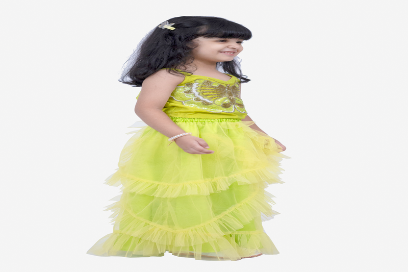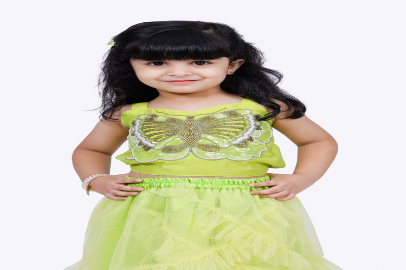 | Product Name | Elaisha Woven Sleeveless Placement Embroidered Top With Net Lehenga Limegreen | |