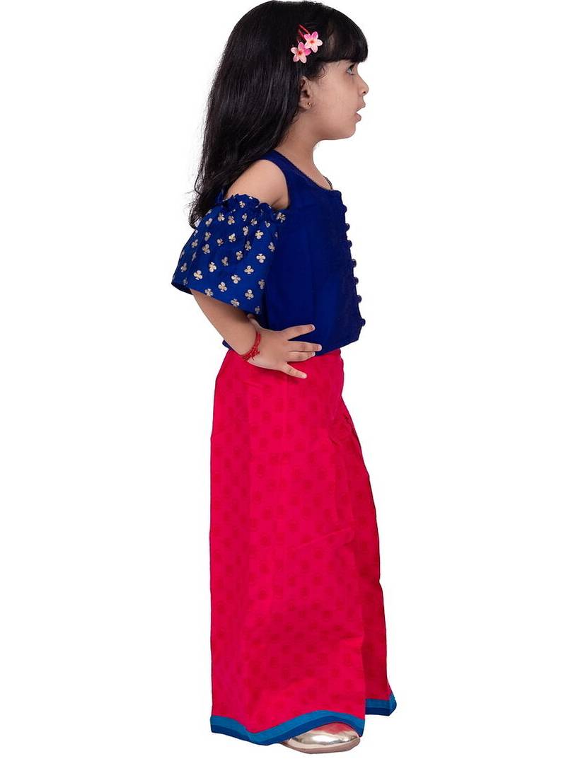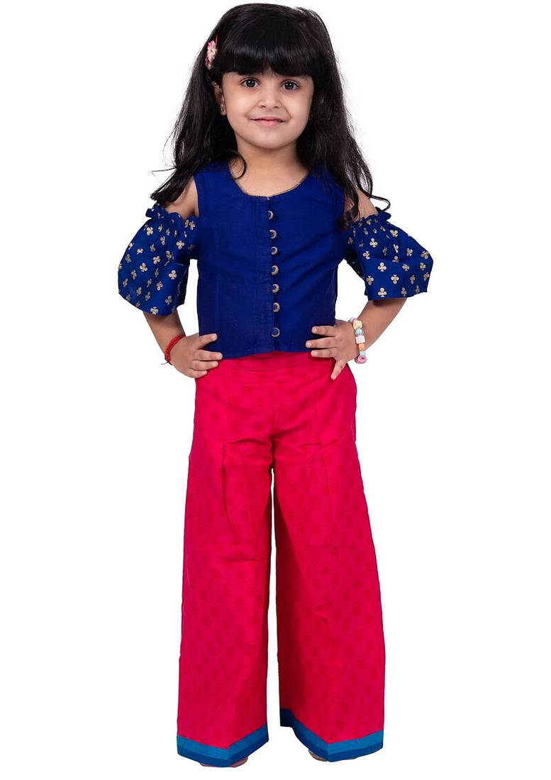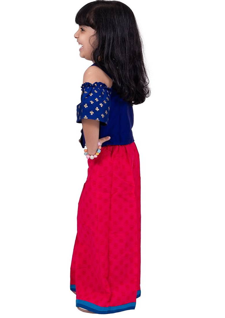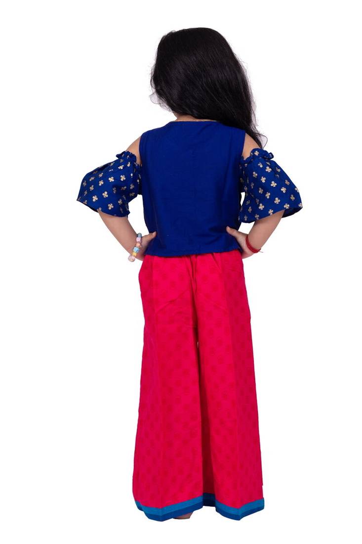 | Product Name | Half Sleeves Foil/Glitter Print Top With Printed Palazzo Blue &Pink | |