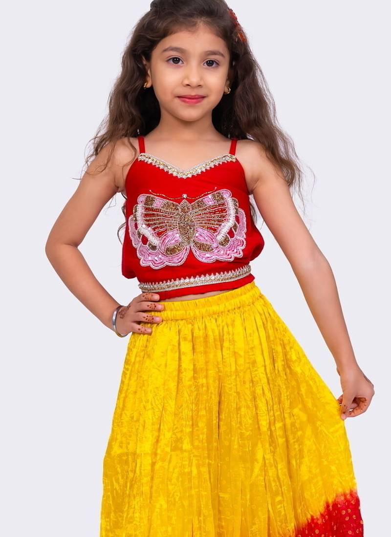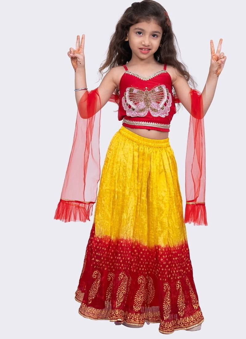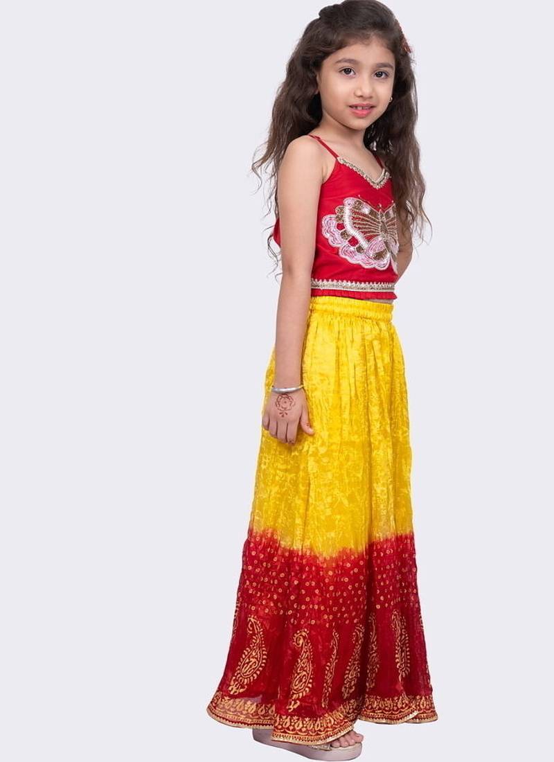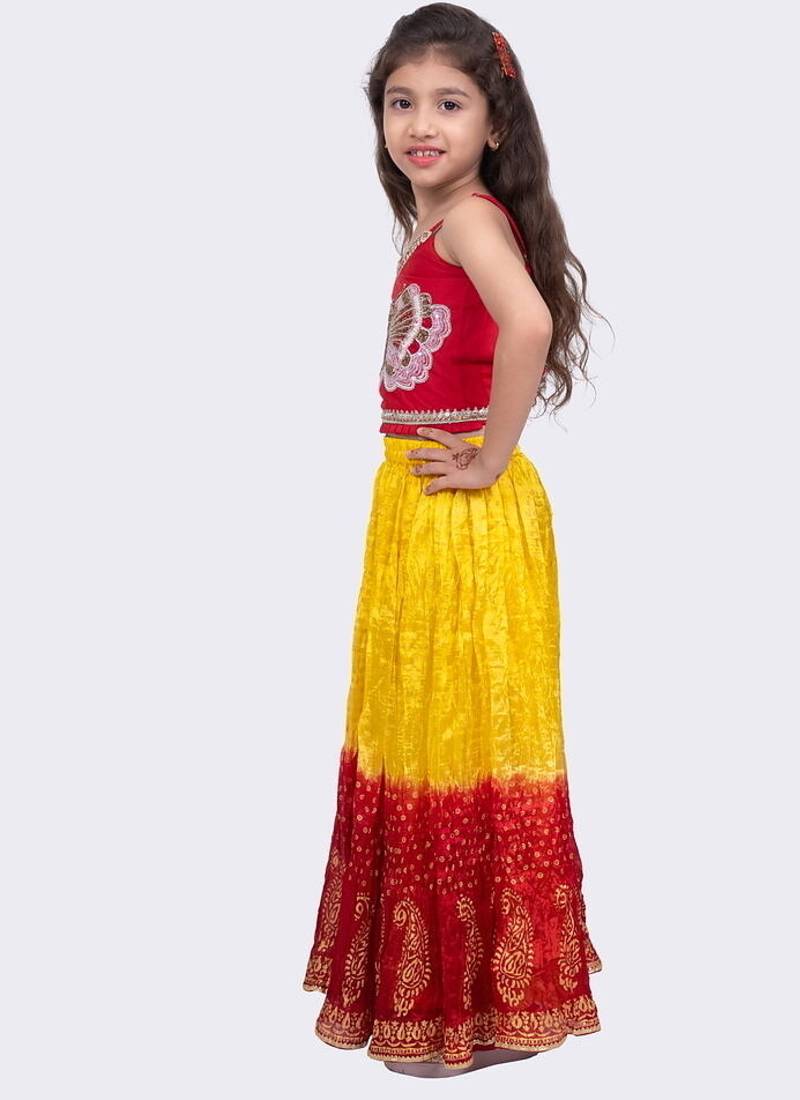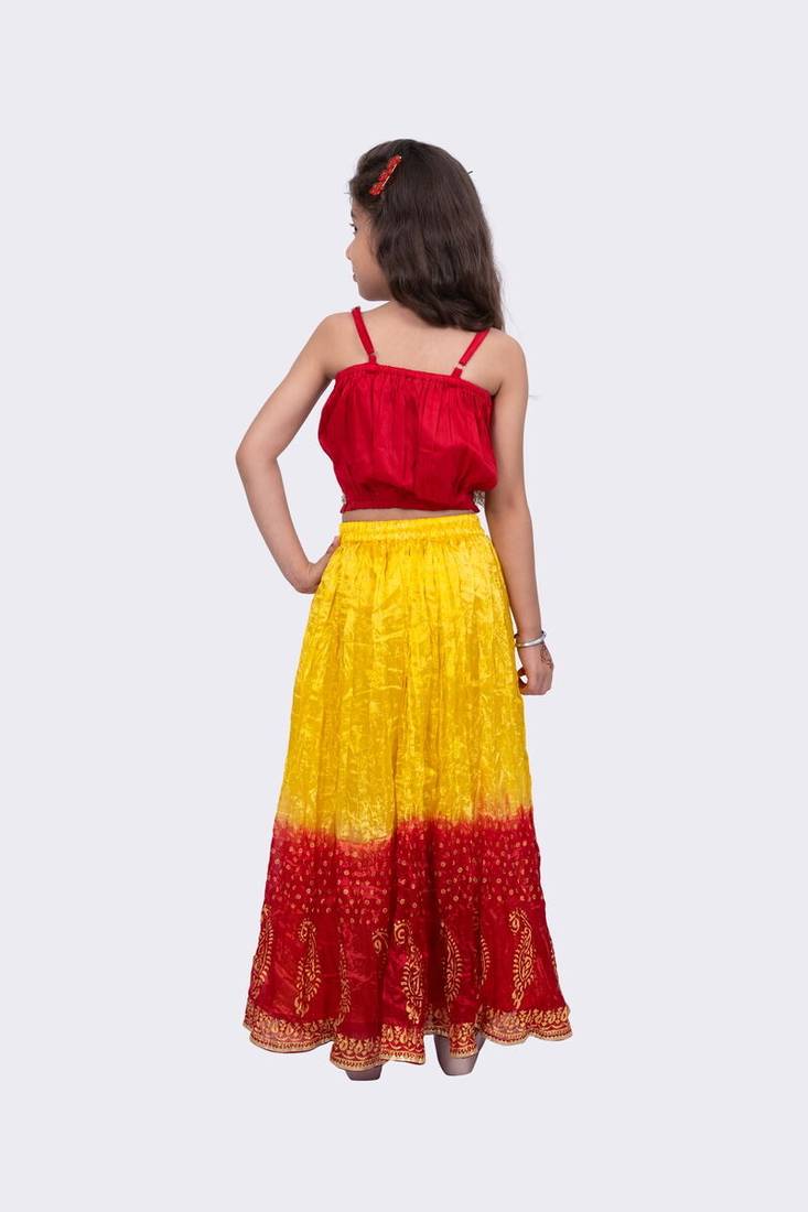 | Product Name | Sleeveless Placement Embroidered Top & Tie Dye Lehenga With Dupatta Red & Yellow | |