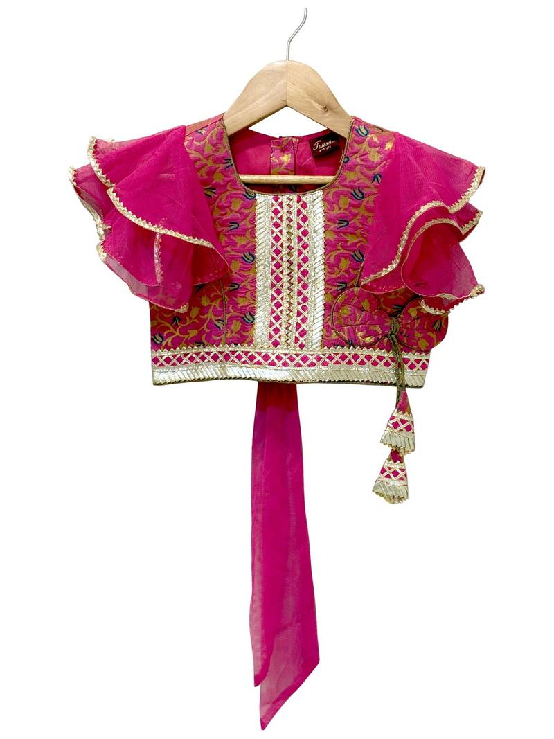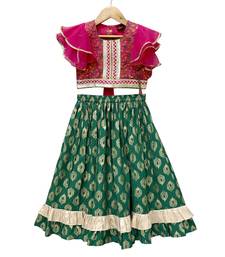 | Product Name | Woven Brocade Half Sleeves Embellished Top With Printed Lehenga Pink & Green | |