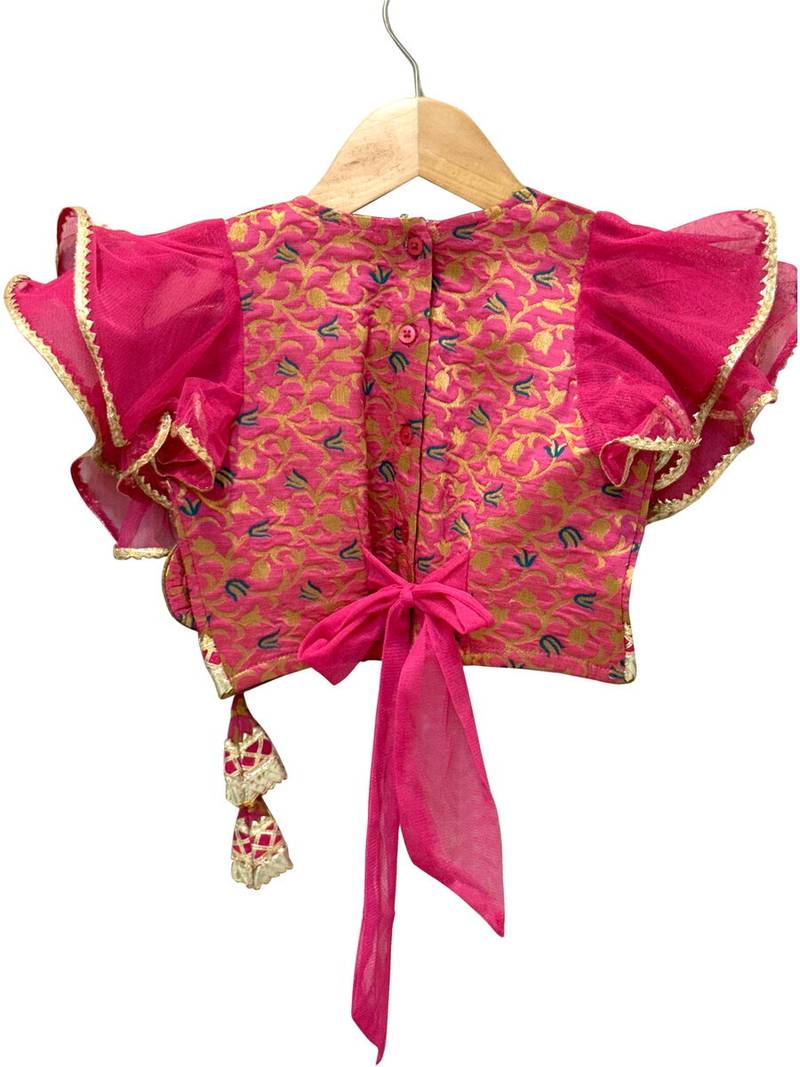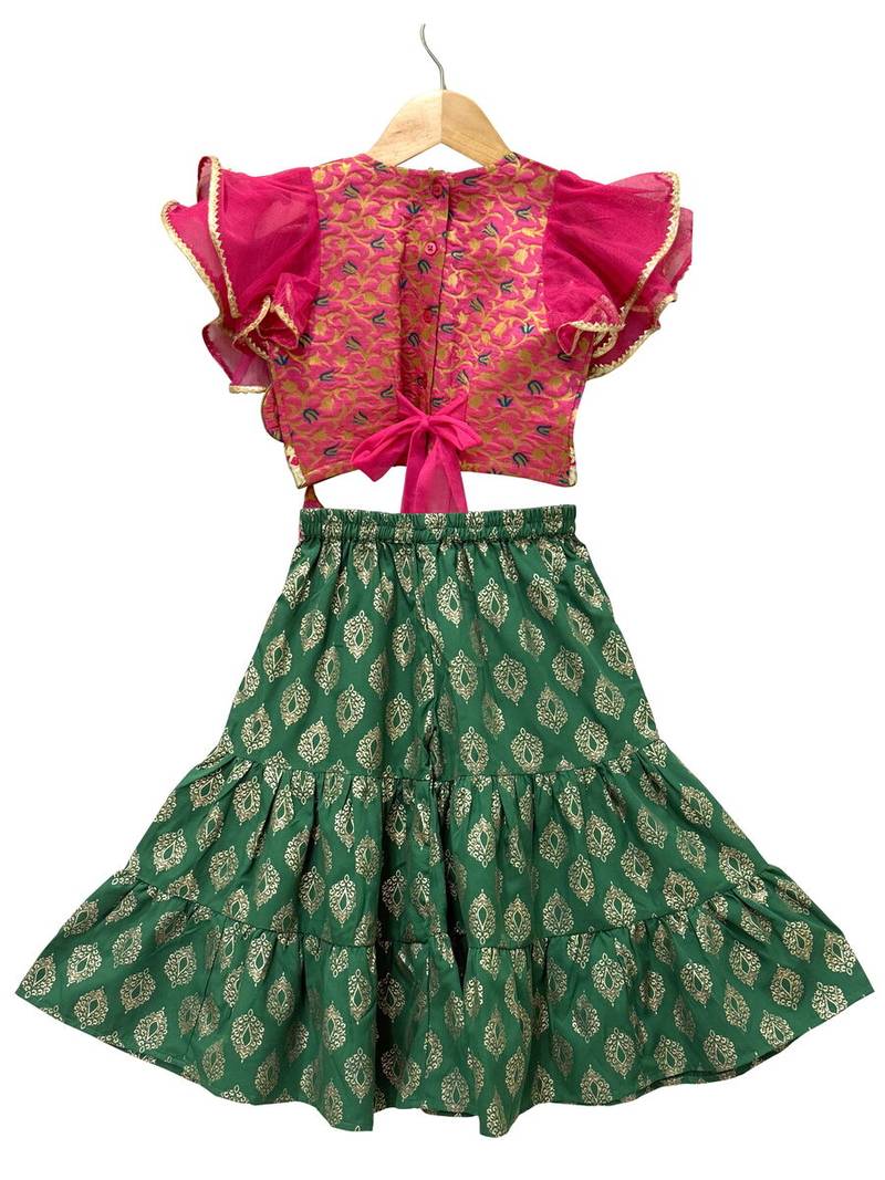 | Product Name | Woven Brocade Half Sleeves Embellished Top With Printed Sharara Pink & Green | |
