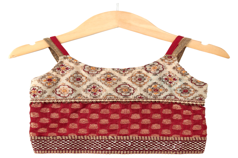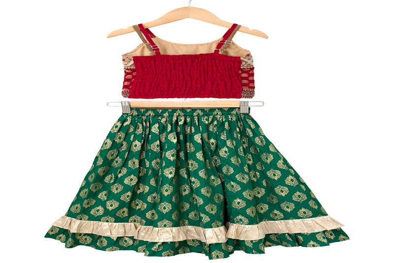 | Product Name | Woven Brocade Sleeveless Embellished Top With Printed Lehenga Red & Green | |
