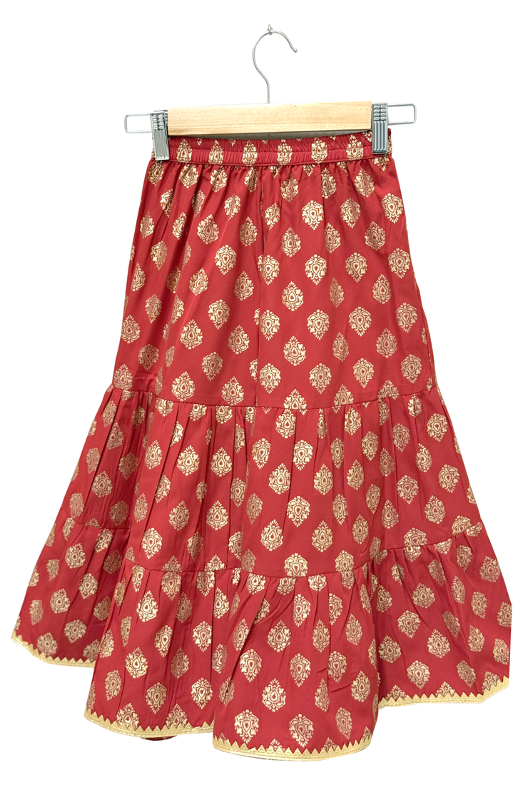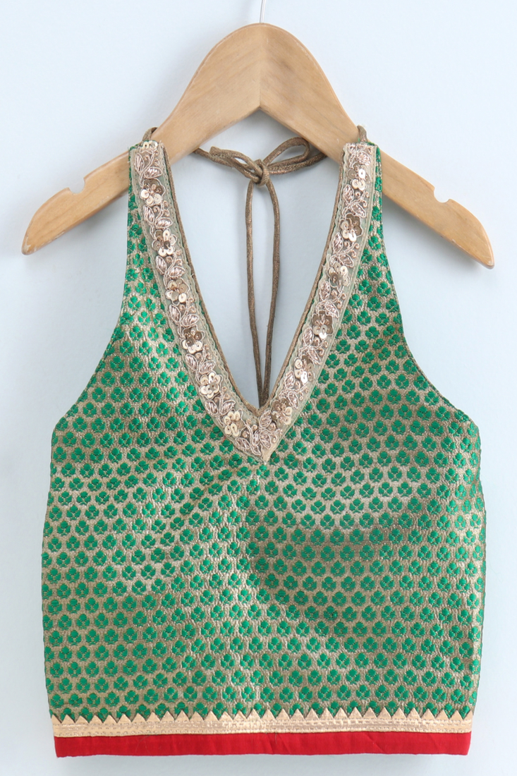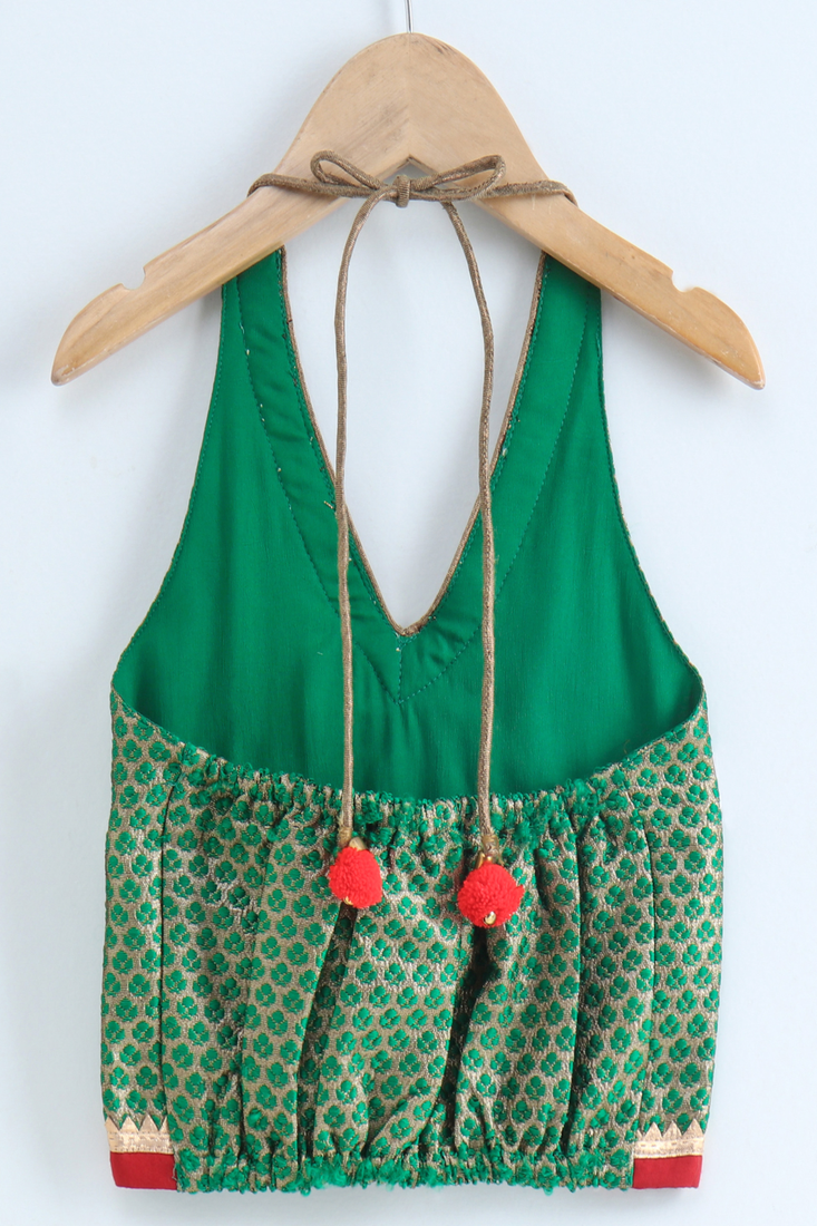 | Product Name | Woven Brocade Sleeveless Embellished Top With Printed Sharara Green & Red | |