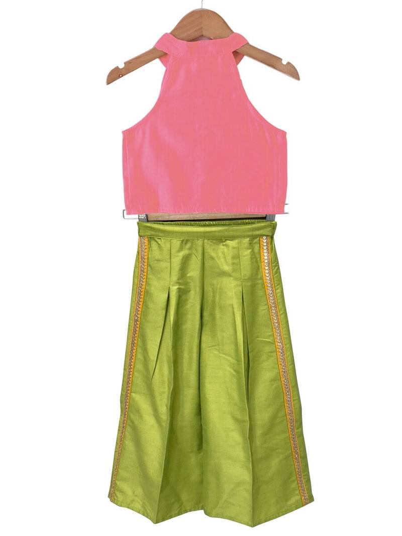| Product Description | Twisha Woven Chanderi Sleeveless Solid Top With Palazzo Coral & Limegreen |