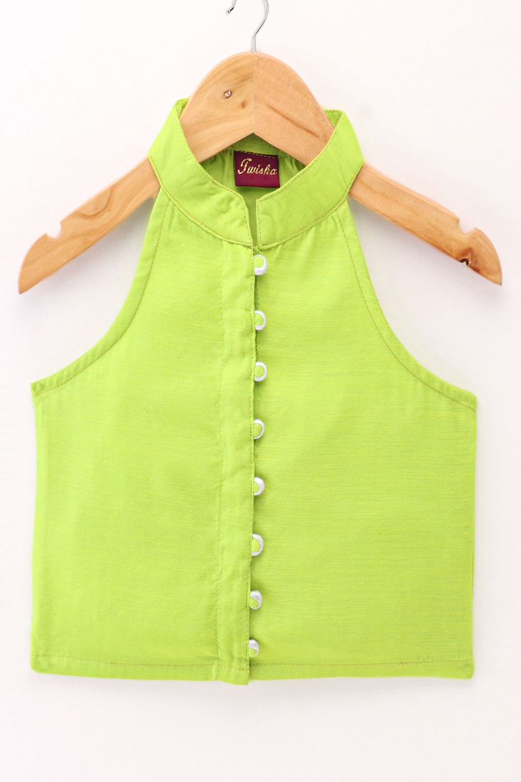 | Product Name | Woven Chanderi Sleeveless Solid Top With Printed Palazzo Limegreen & Pink | |