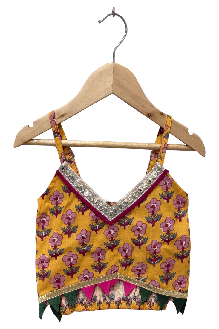 | Product Name | Woven Cotton Sleeveless Printed Top With Printed Lehenga Mustard & Green | |