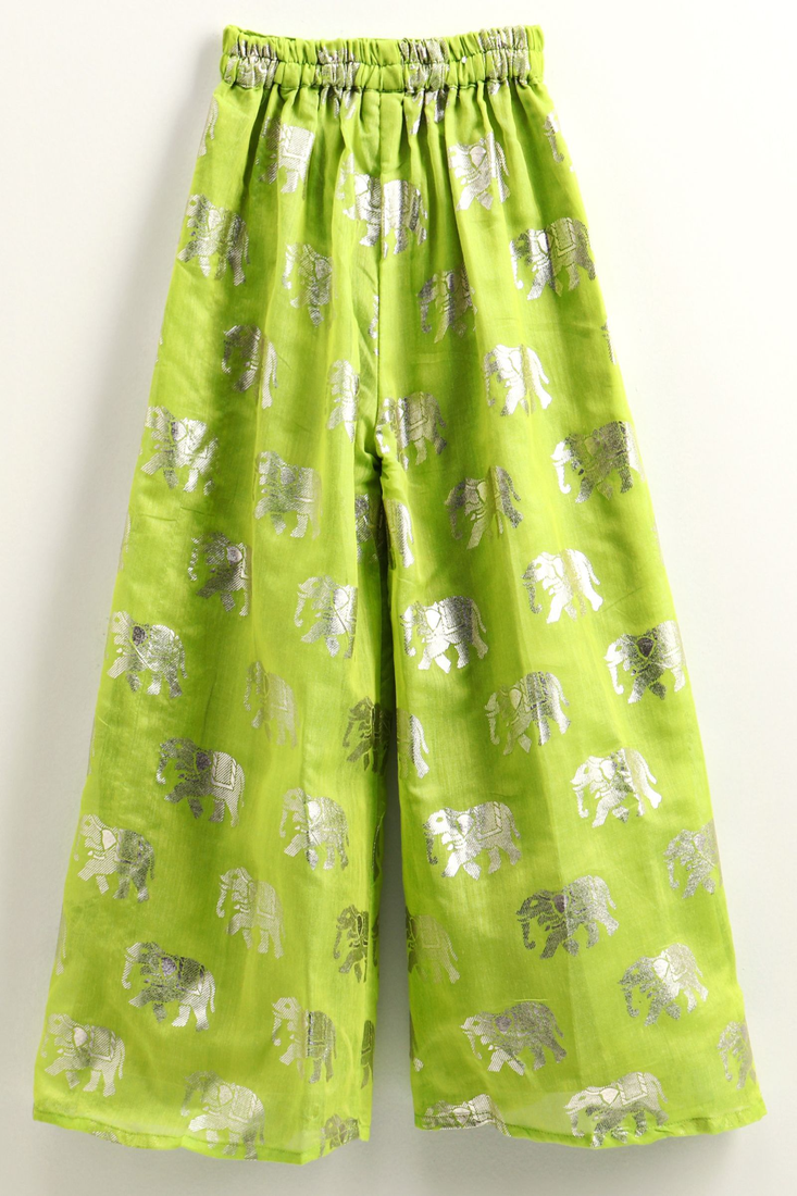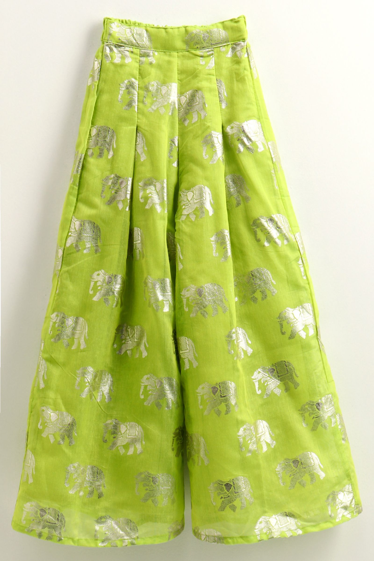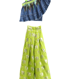 | Product Name | Woven Denim Sleeveless Solid Top With Printed Palazzo Blue & Limegreen | |